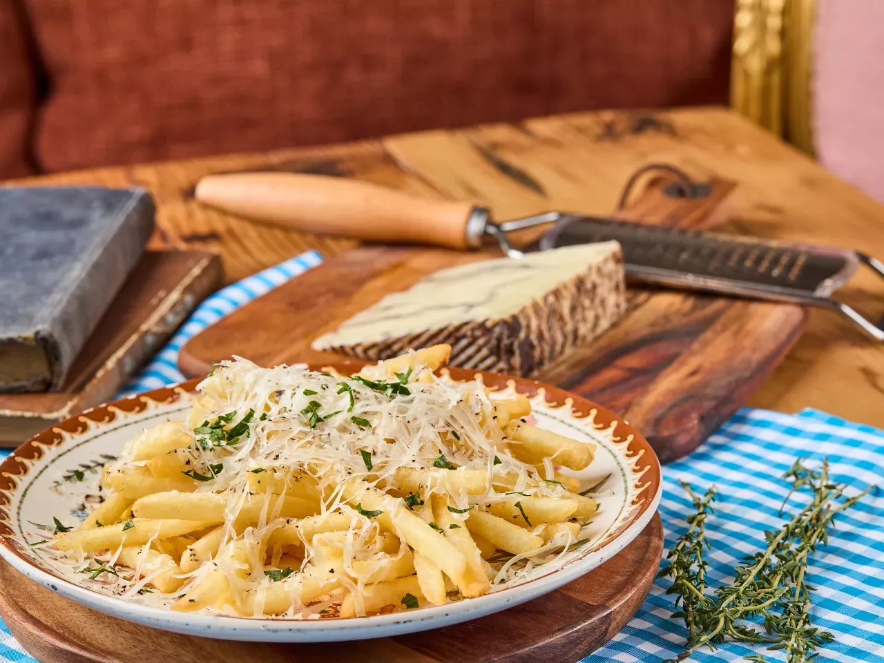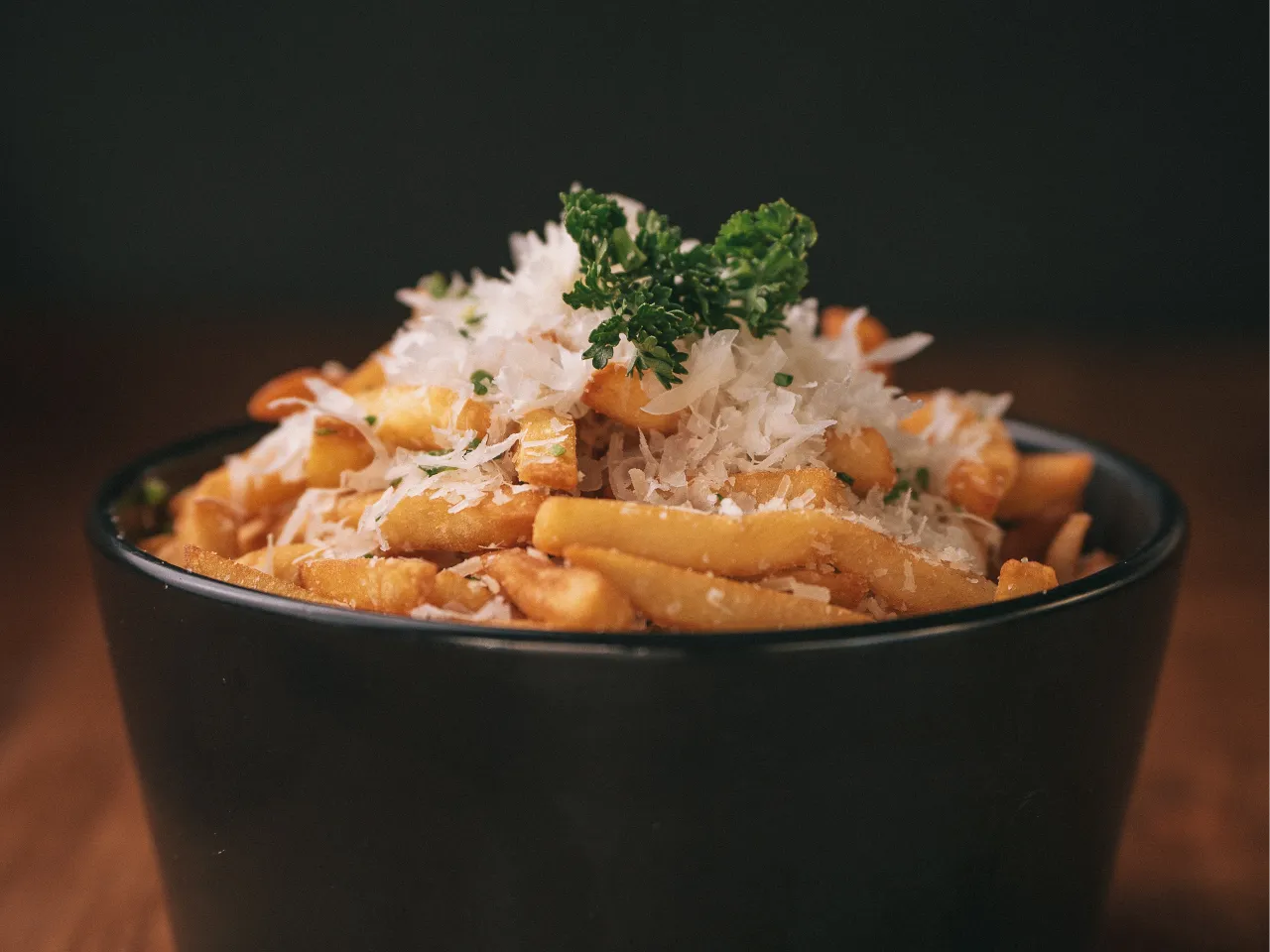 Papas fritas con cáscara y aceite de trufa Papas fritas con cáscara y aceite de trufa
