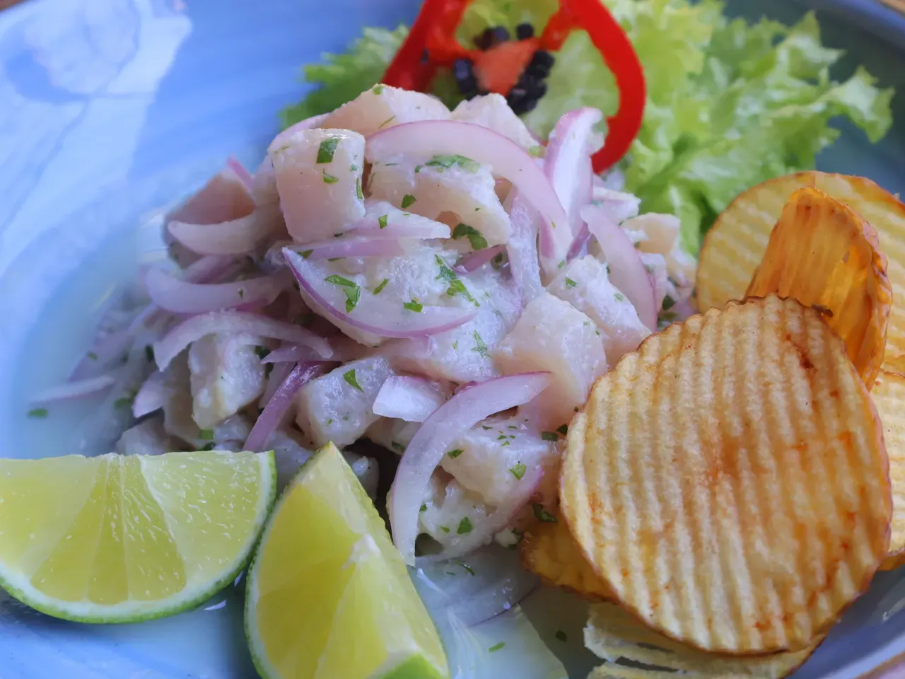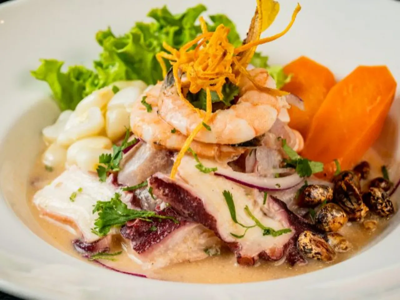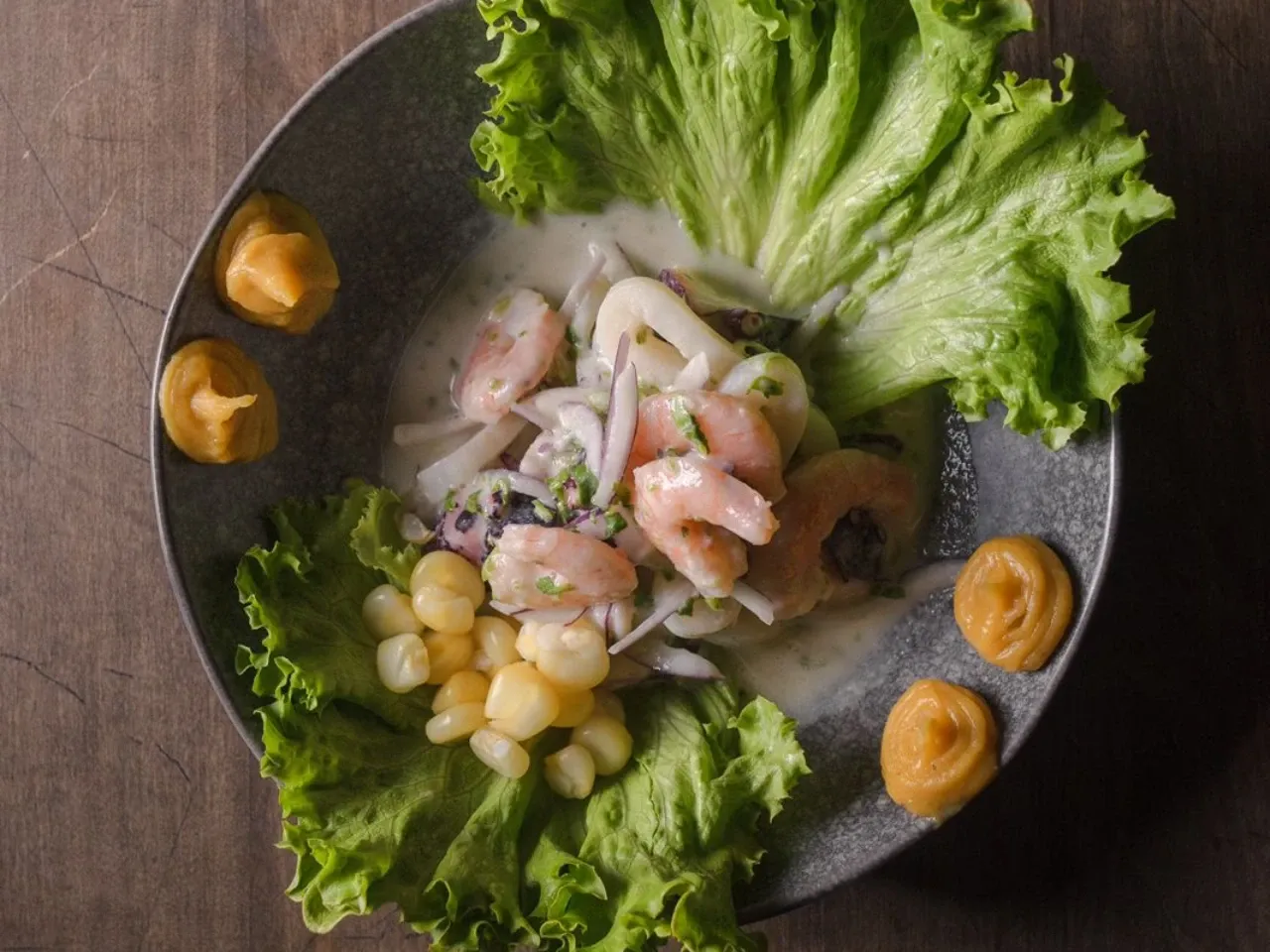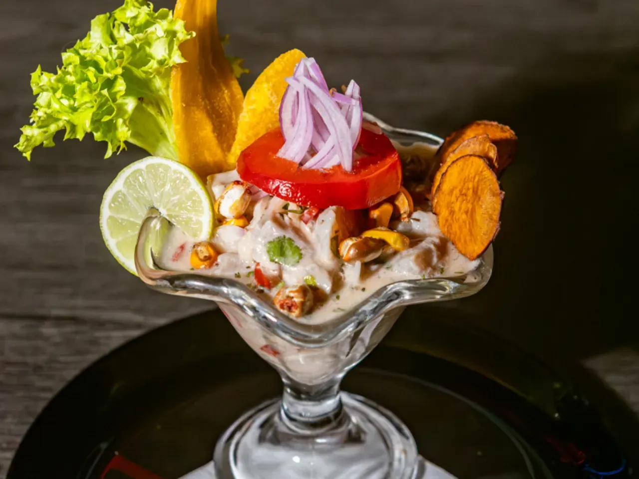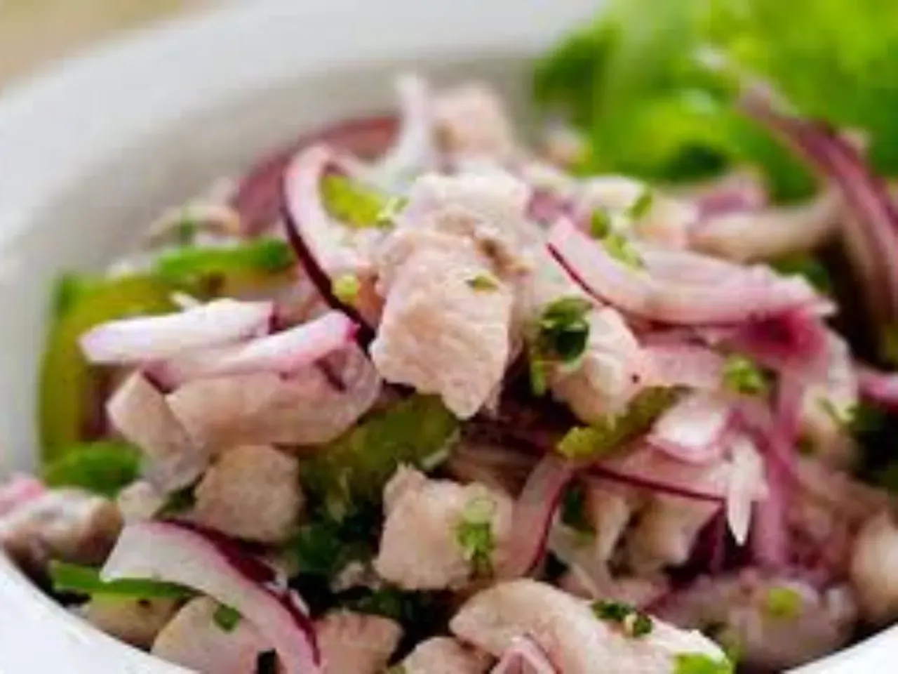 Mixtura de mariscos y pescado, previamente cocidos y marinados en jugo de limón de pica, leche de tigre, cebolla y especias.