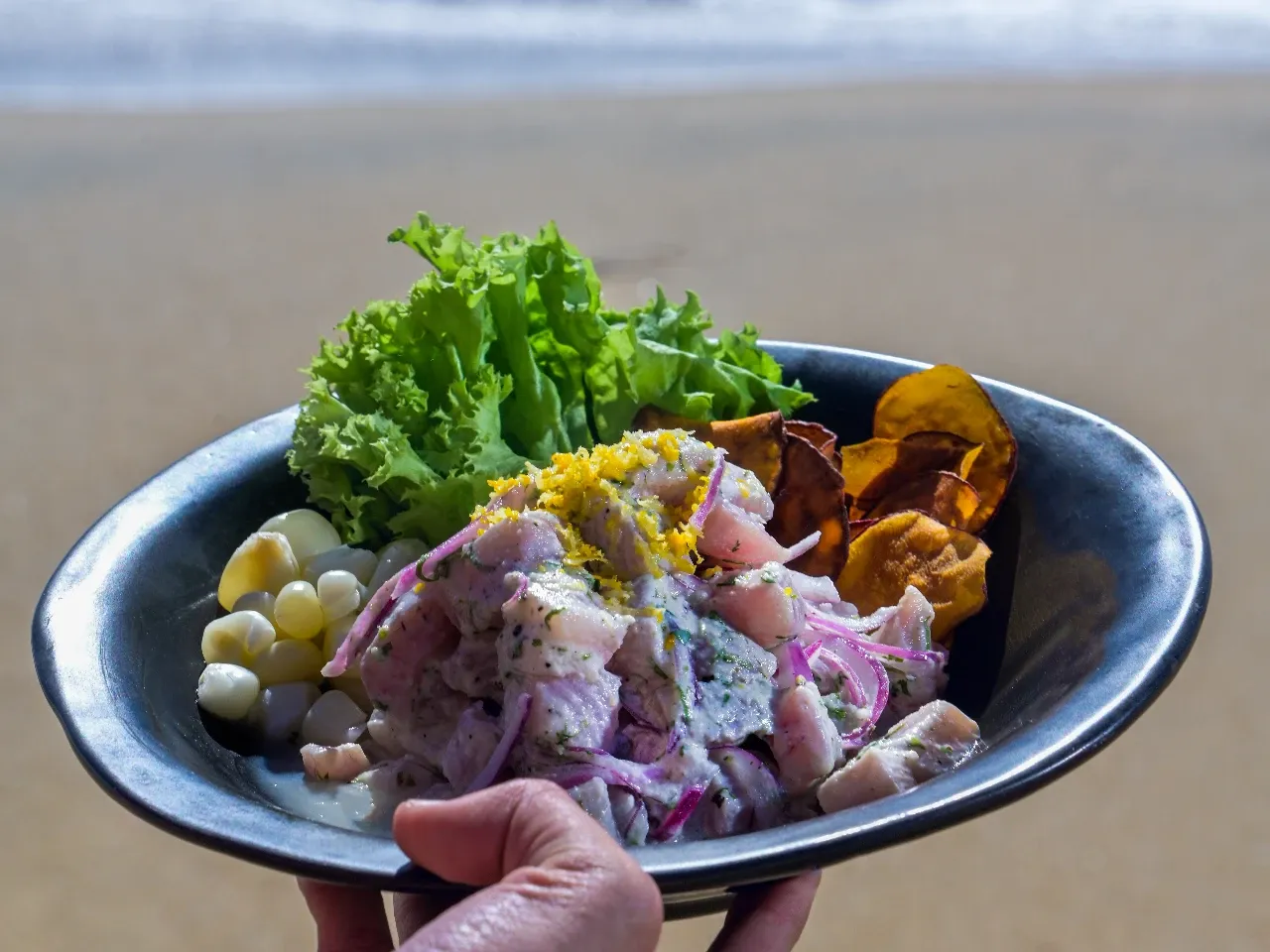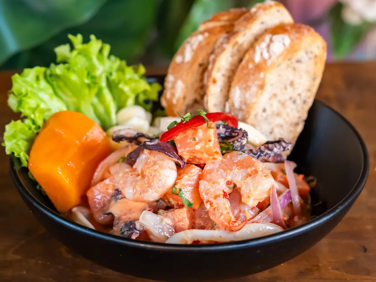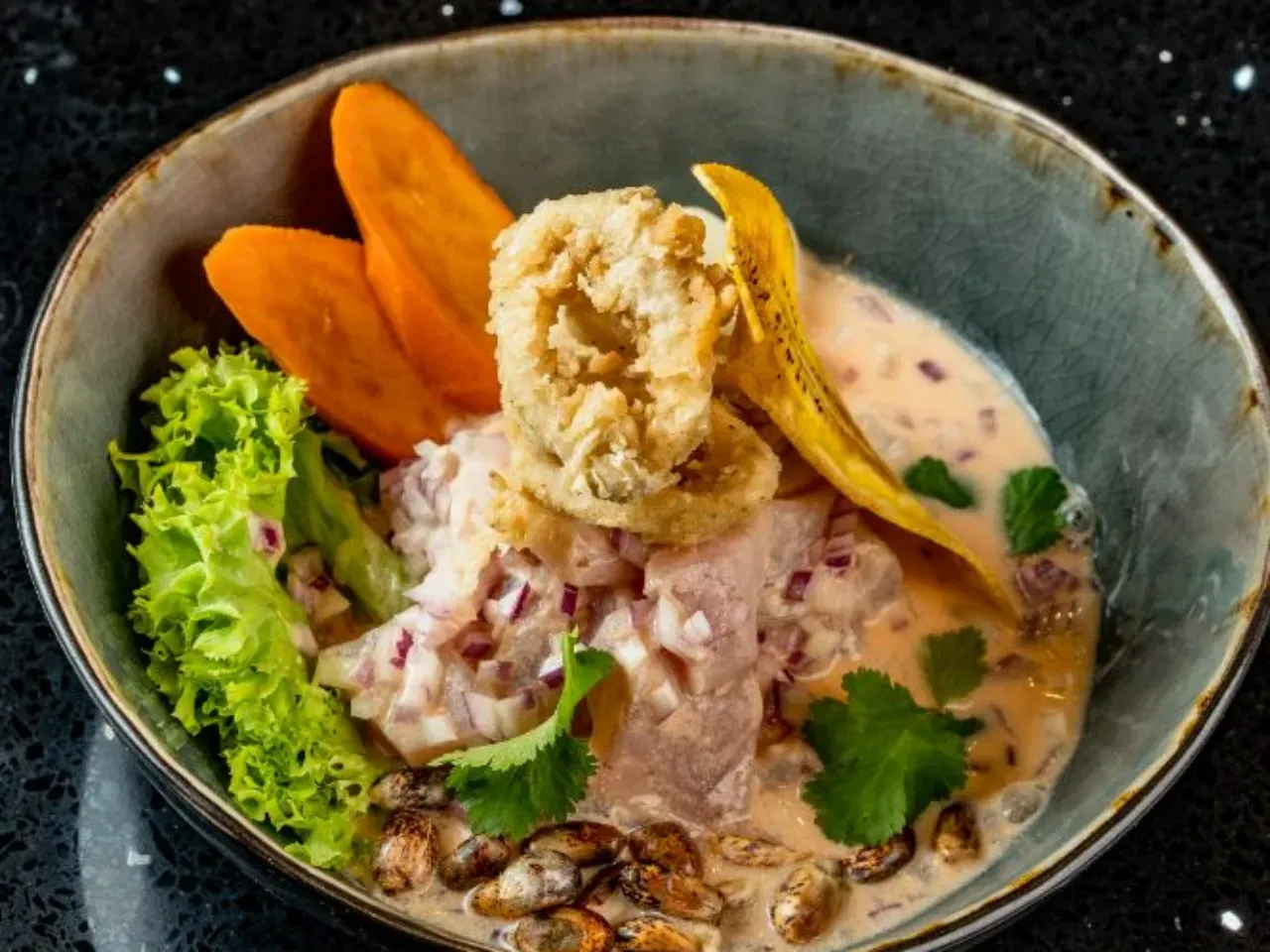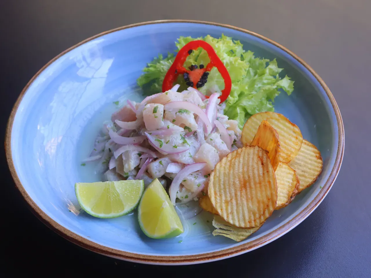Mixtura de mariscos y pescado, previamente cocidos y marinados en jugo de limón de pica, leche de tigre, cebolla y especias.
