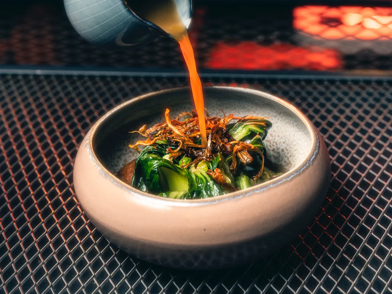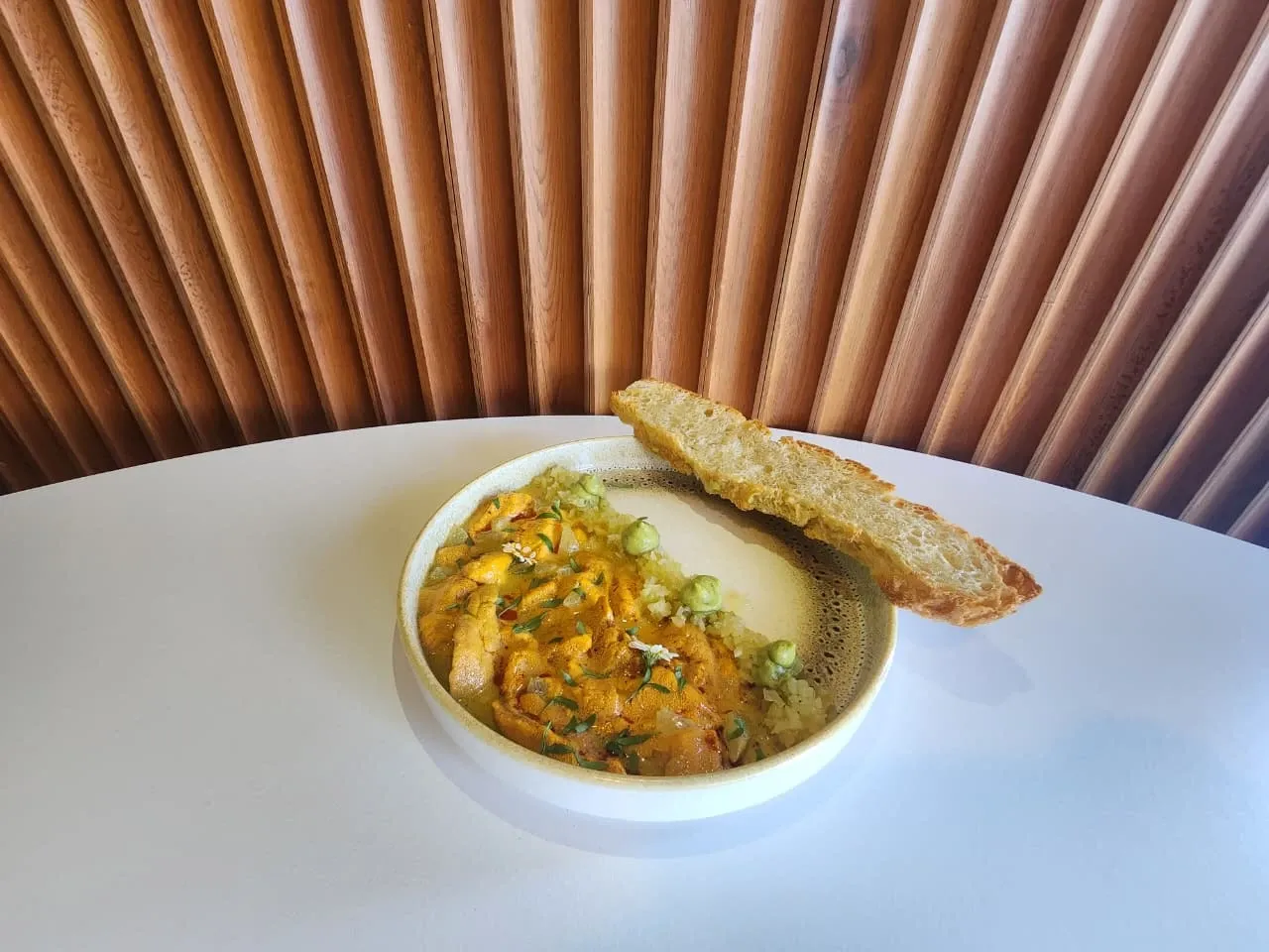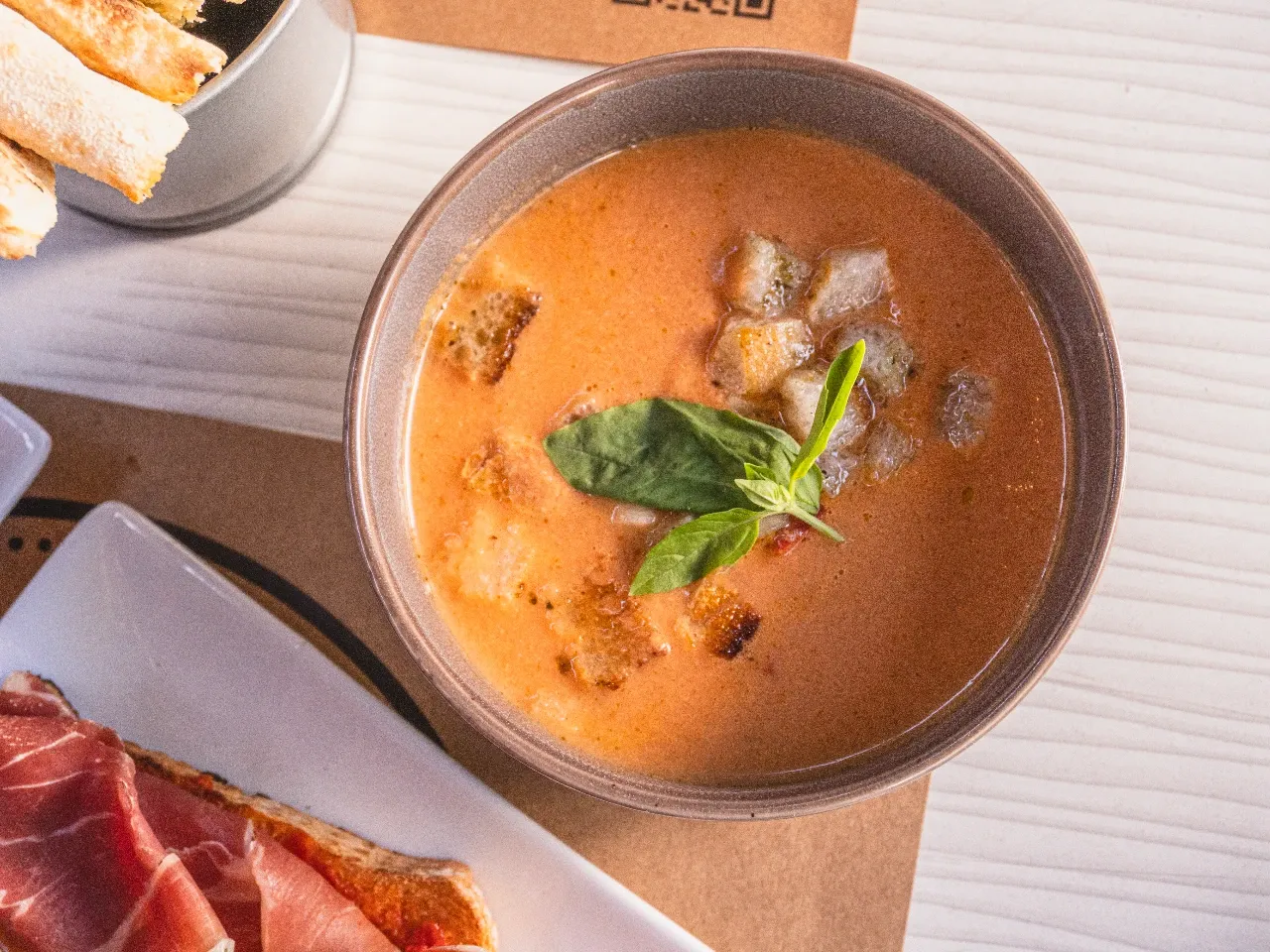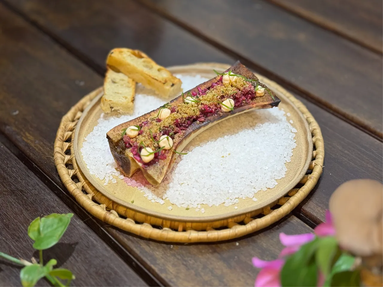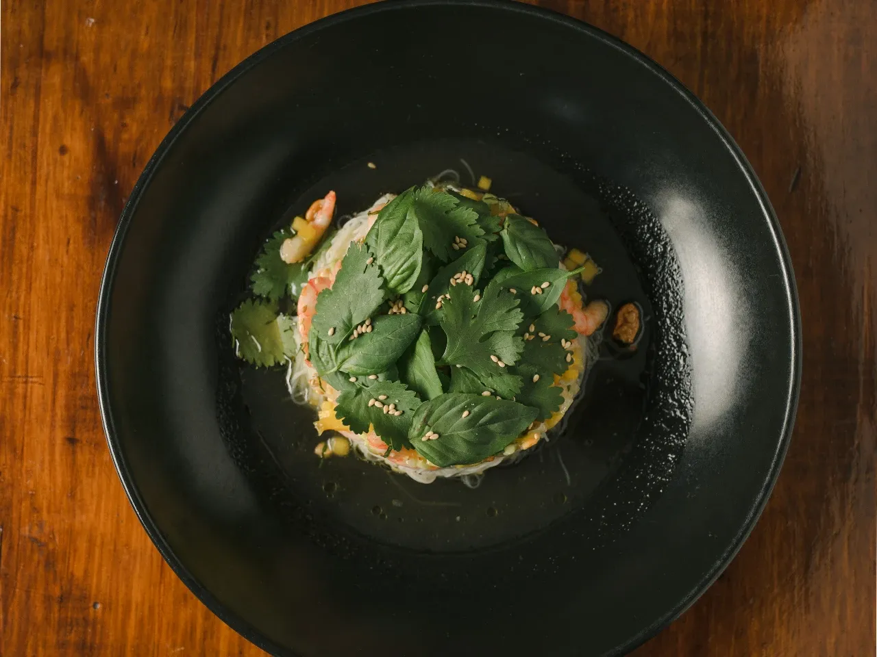 Sopa fría de almendras y ajo, trabajada hasta lograr una textura sedosa y delicada. Se acompaña de una mini ensalada de camarones nacionales, con pepino previamente desaguado para potenciar su frescor, aliñado con sal, pimienta y zest de limón. Un plato fresco y elegante, donde la suavidad del gazpacho contrasta con la textura y el …