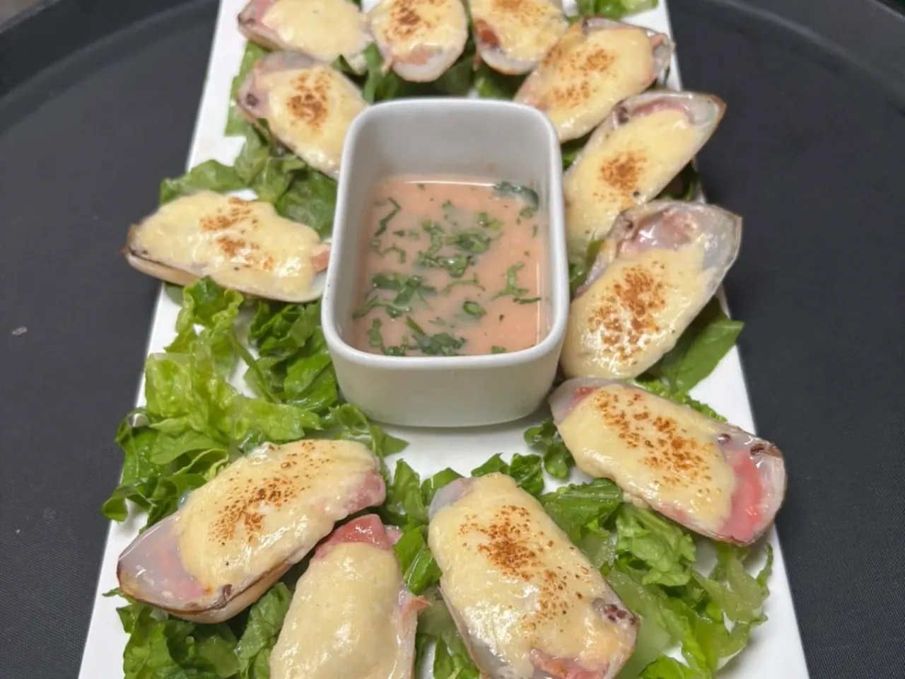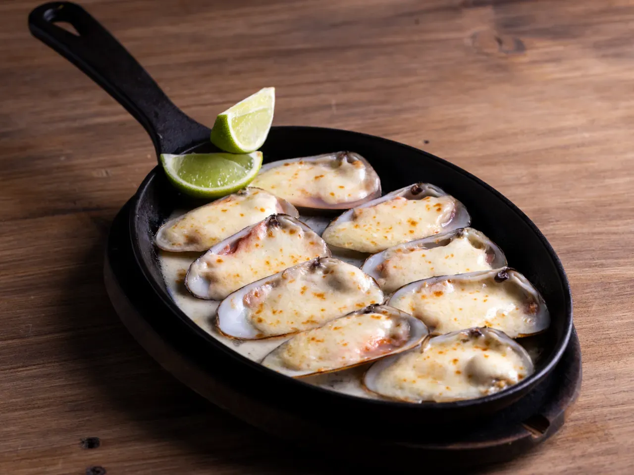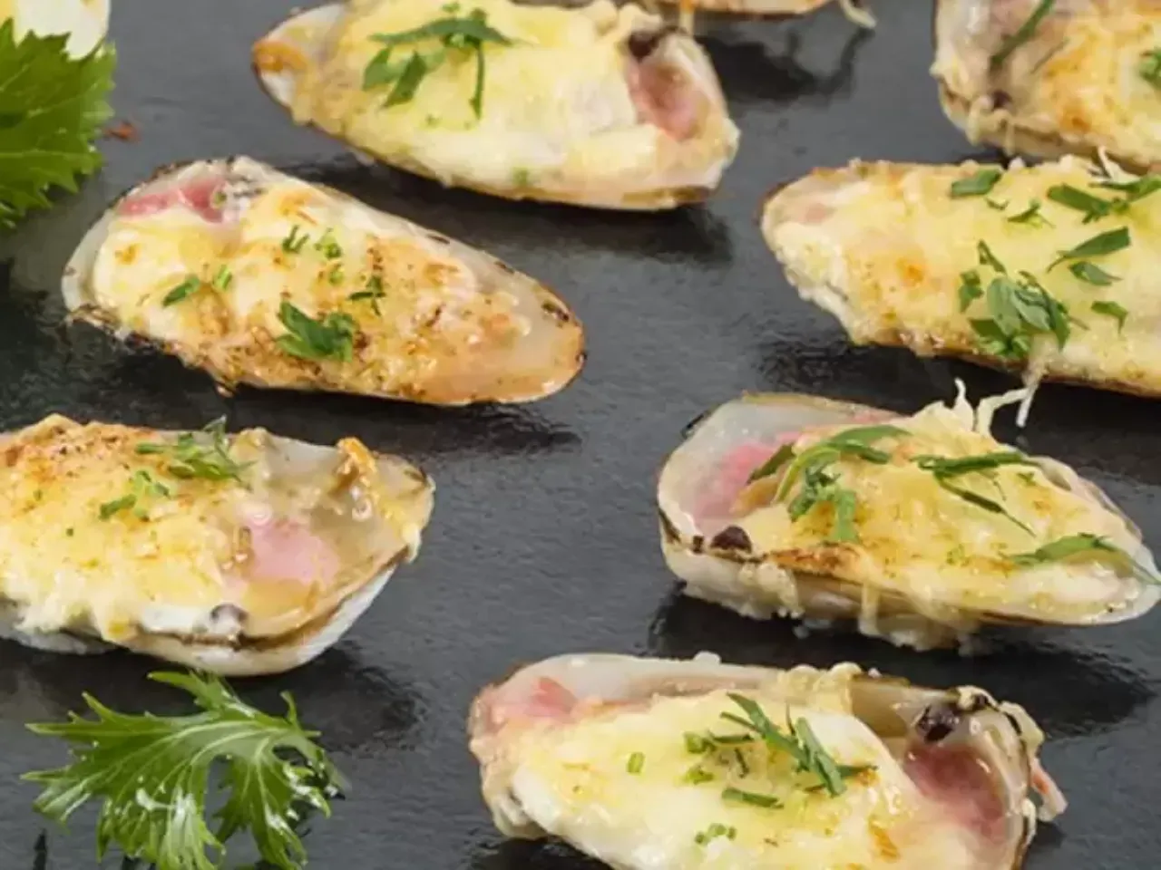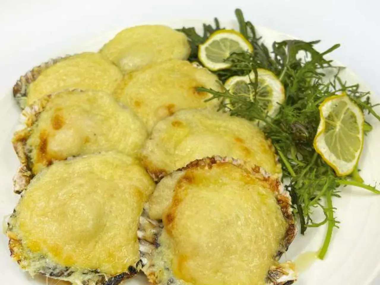 12 unidades de machas limpias y frescas, con queso parmesano derretido