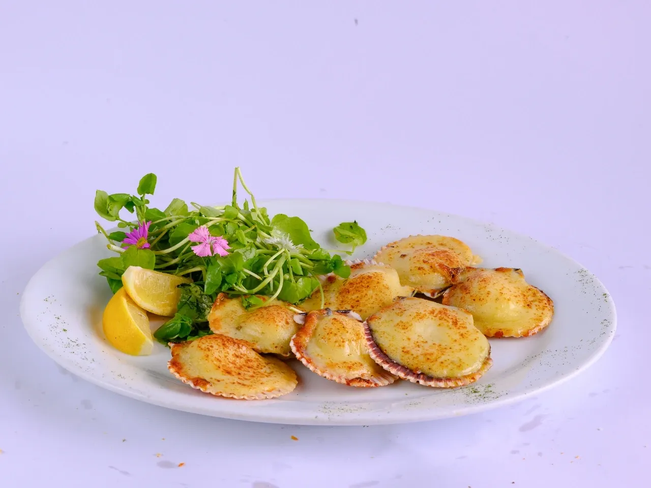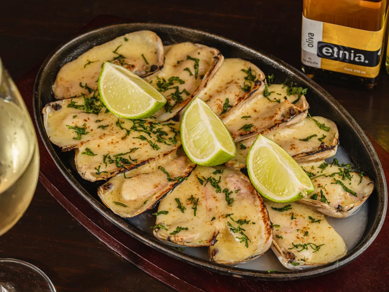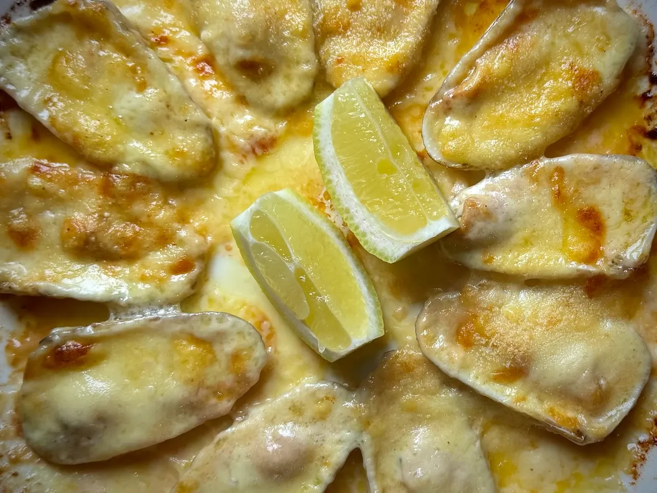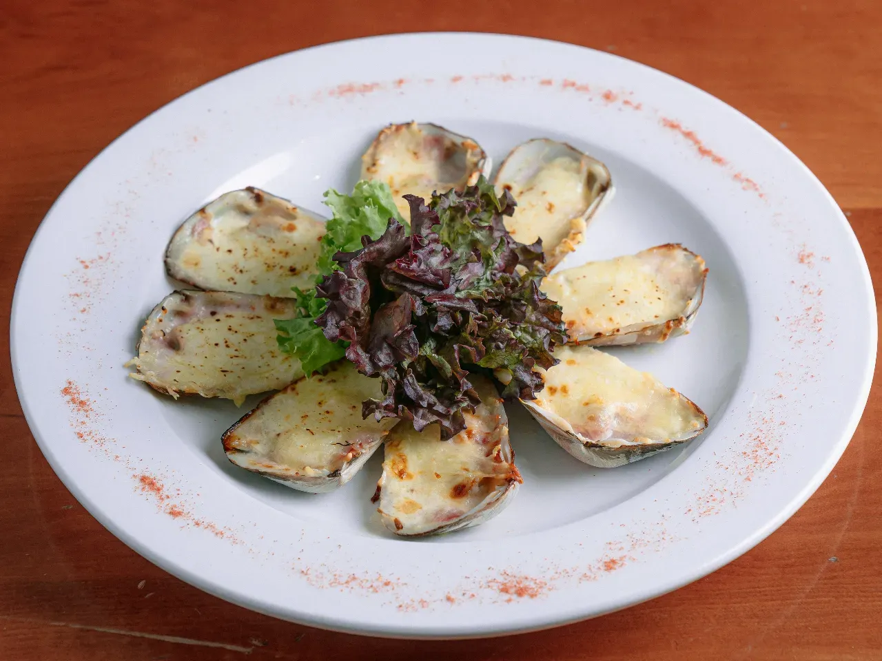 12 unidades de machas limpias y frescas, con queso parmesano derretido