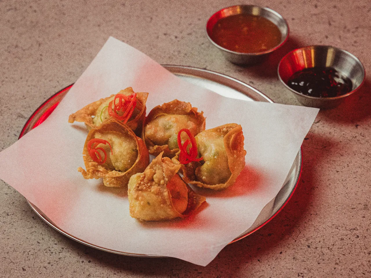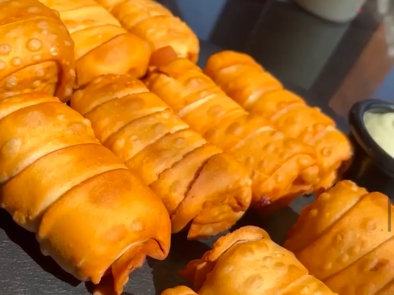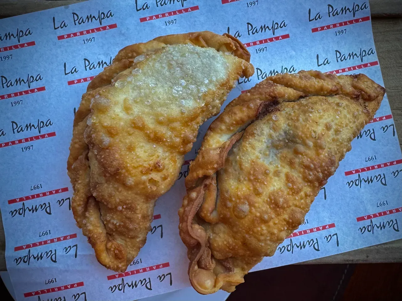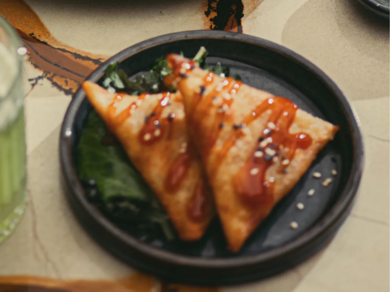 Masa de trigo frita, rellena con salteado de entraña, repollo morado. 2 unidades