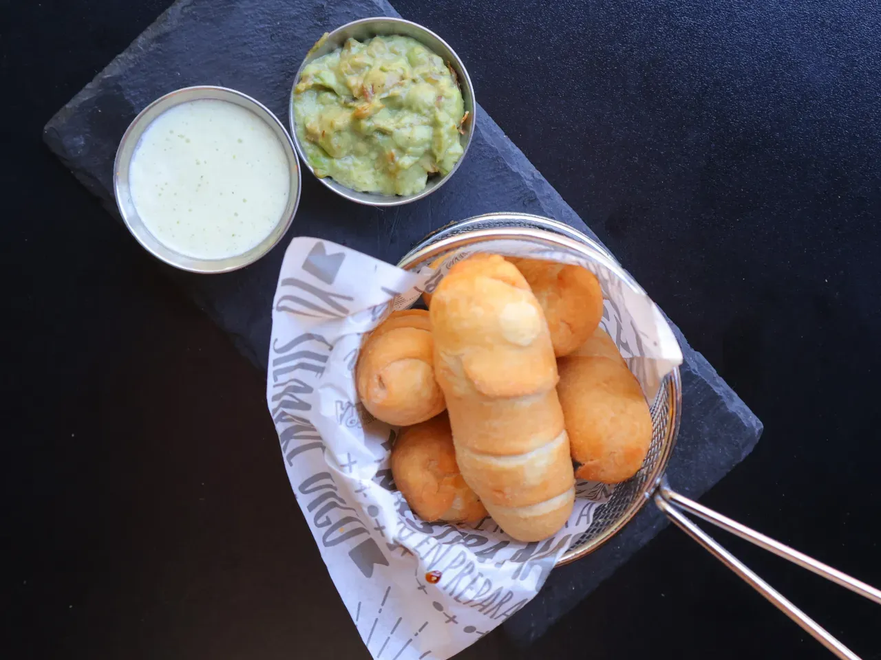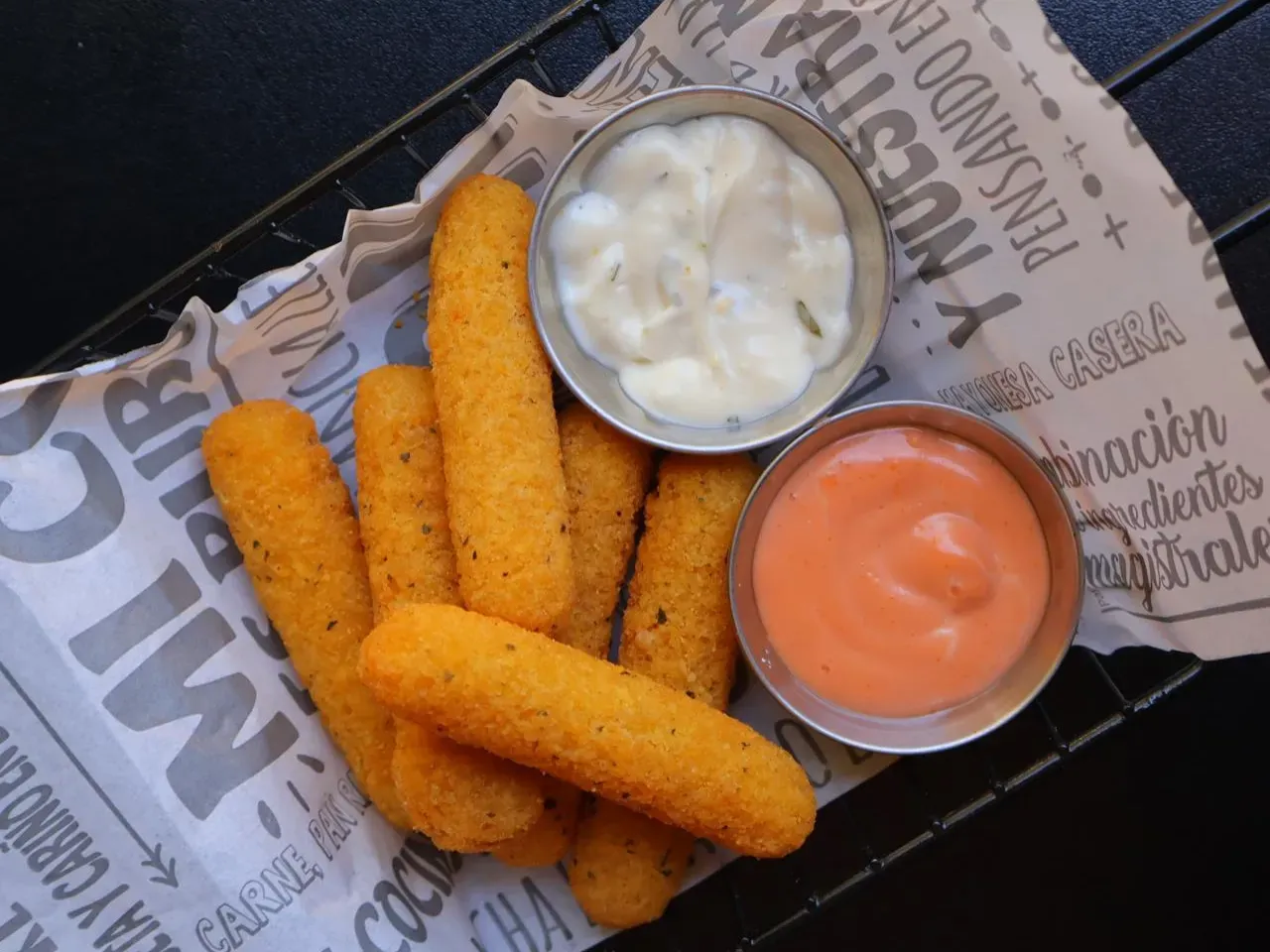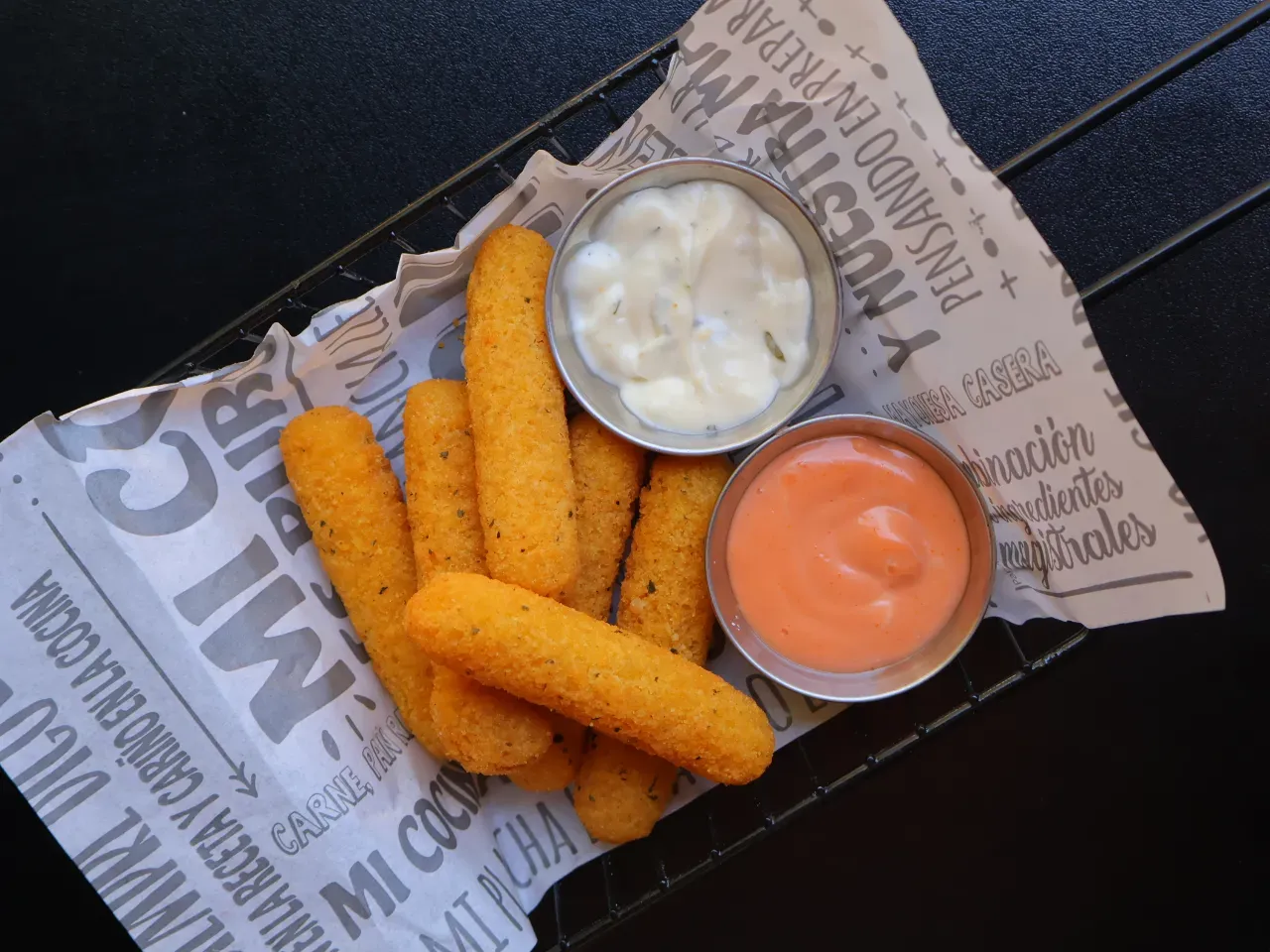 Palitos de queso blanco envueltos en masa frita acompañada de salsa de la casa (5 unidades).