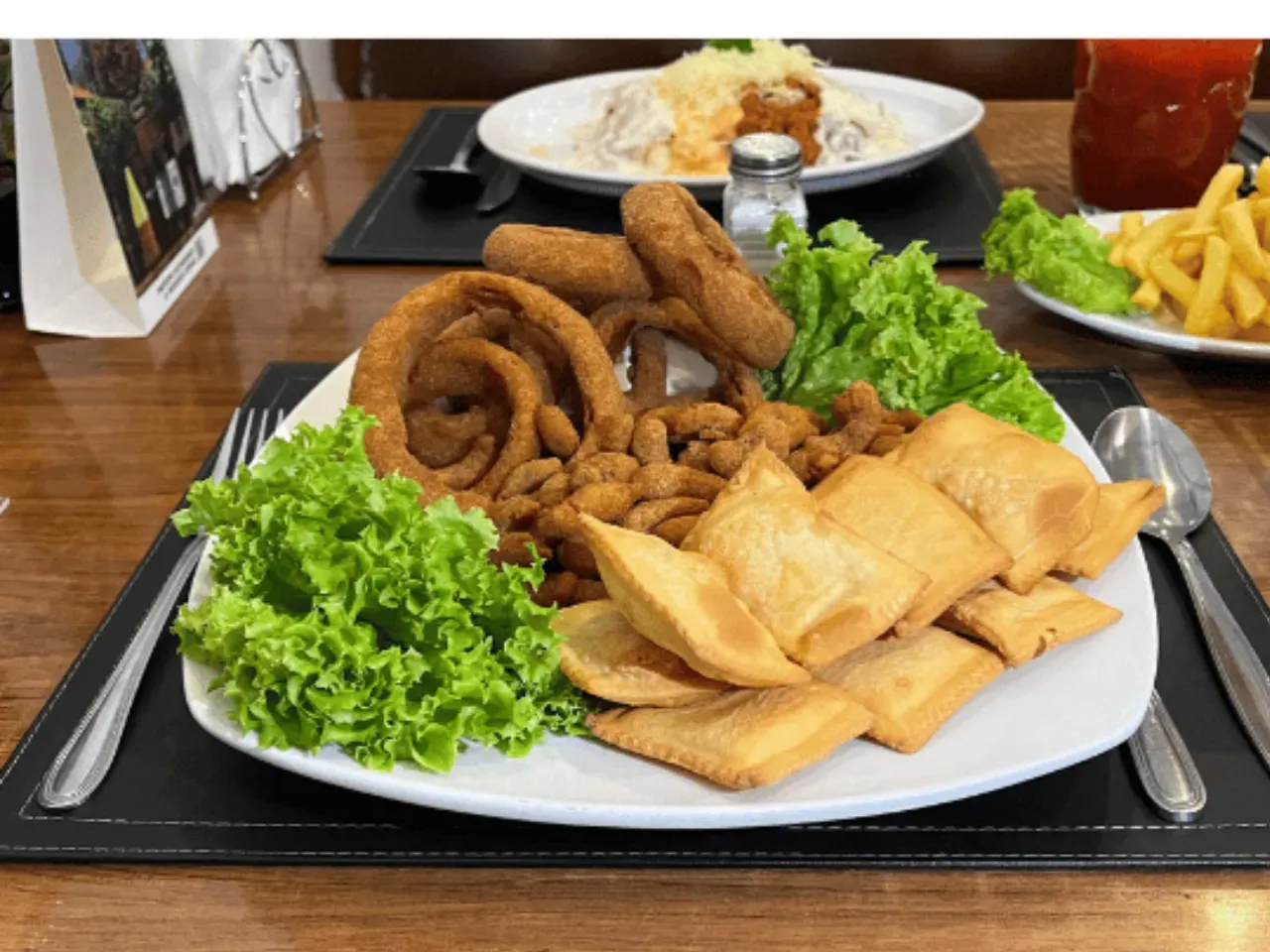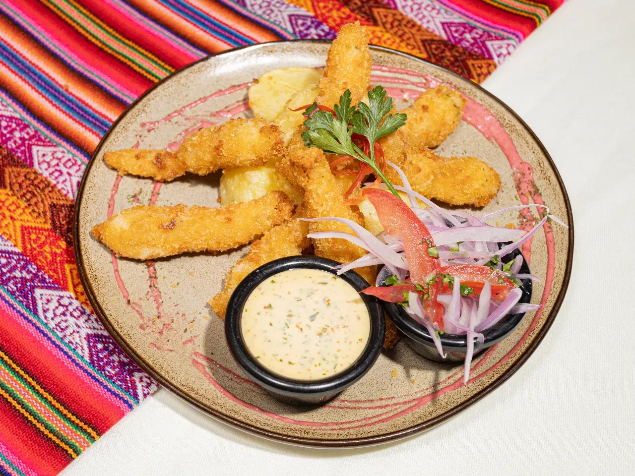 Crujientes aritos de cebolla fritos, acompañados de nuestra icónicas empanaditas de queso con salsa pomodoro y la selección de los más frescos, crujientes y delicados camarones apanados servidos con salsa de soya.