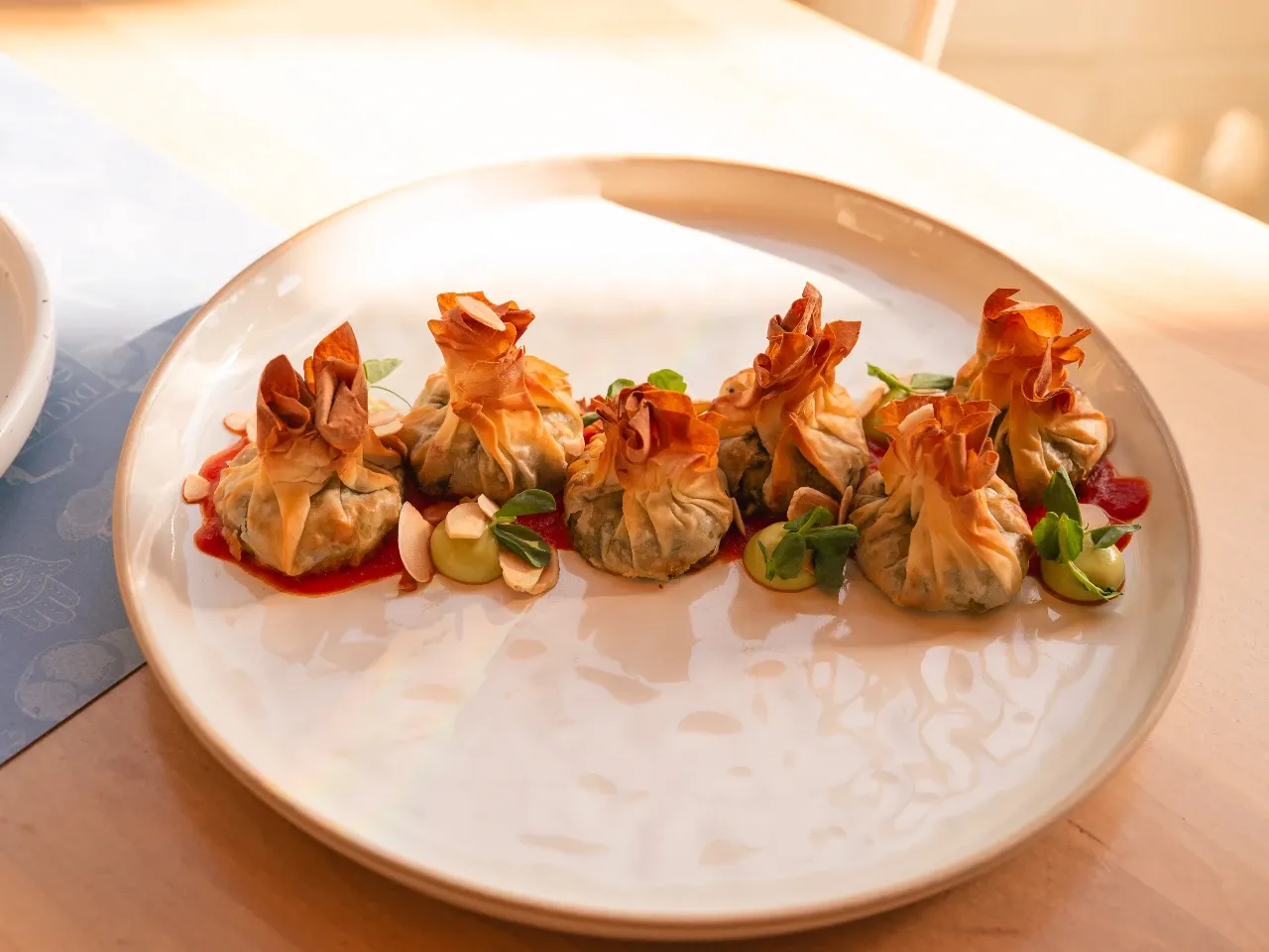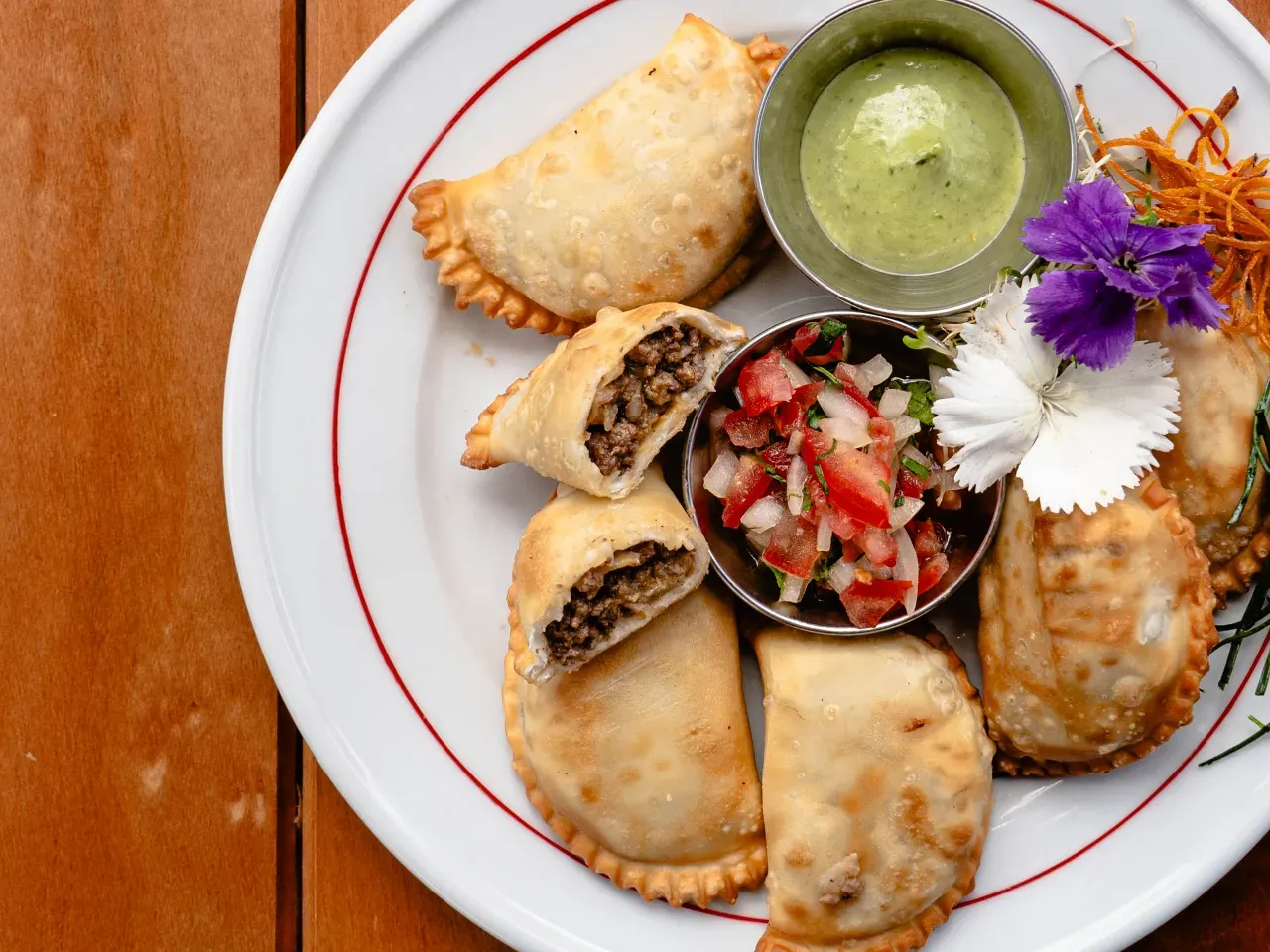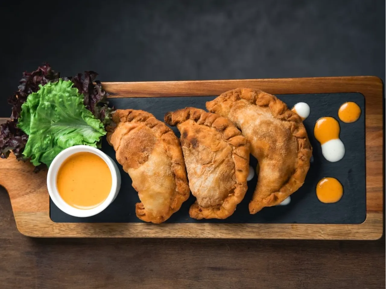 Exquisitas empanadas con selección de hongos de temporada, cebollín y salsa de tamarindo