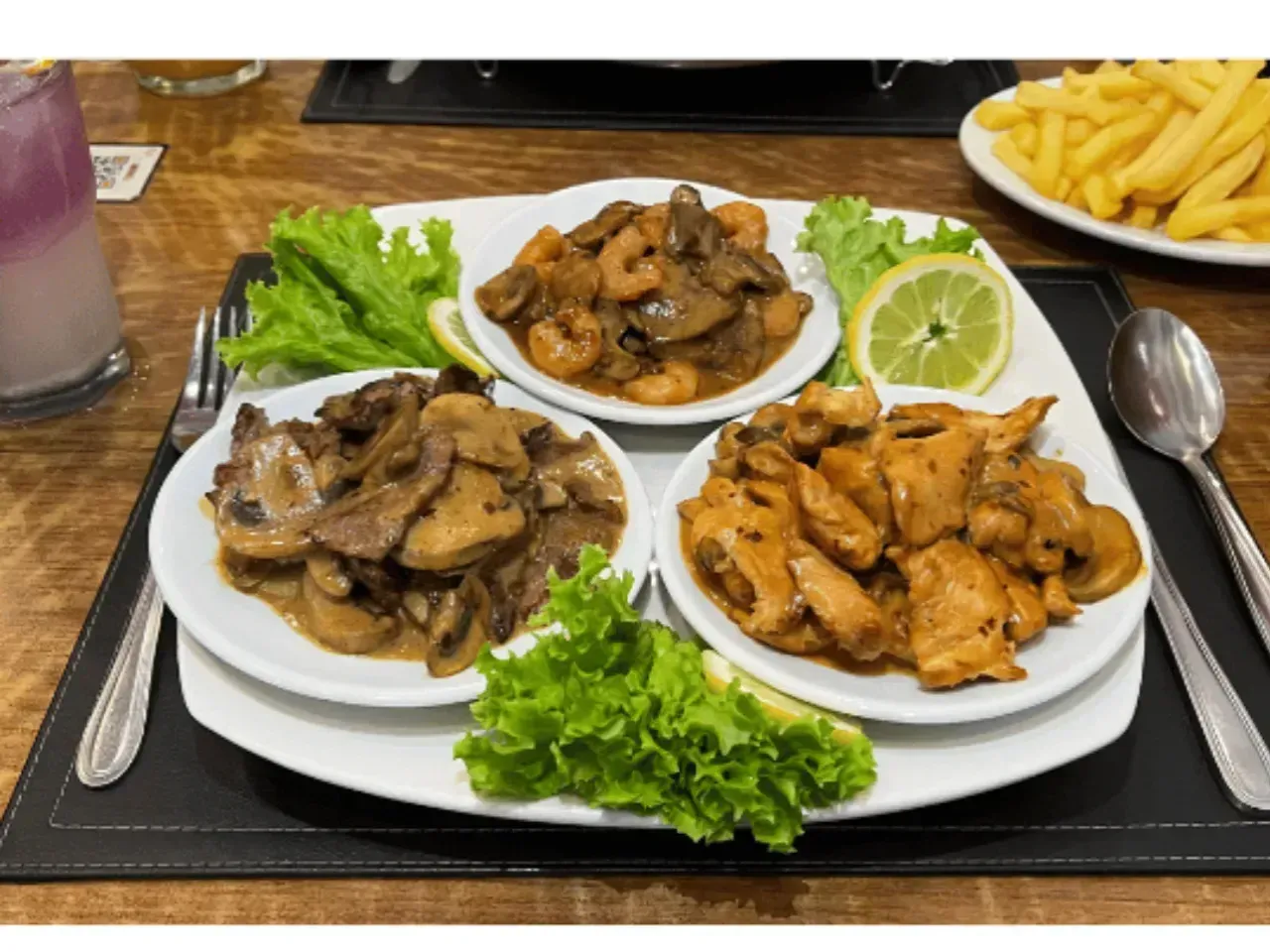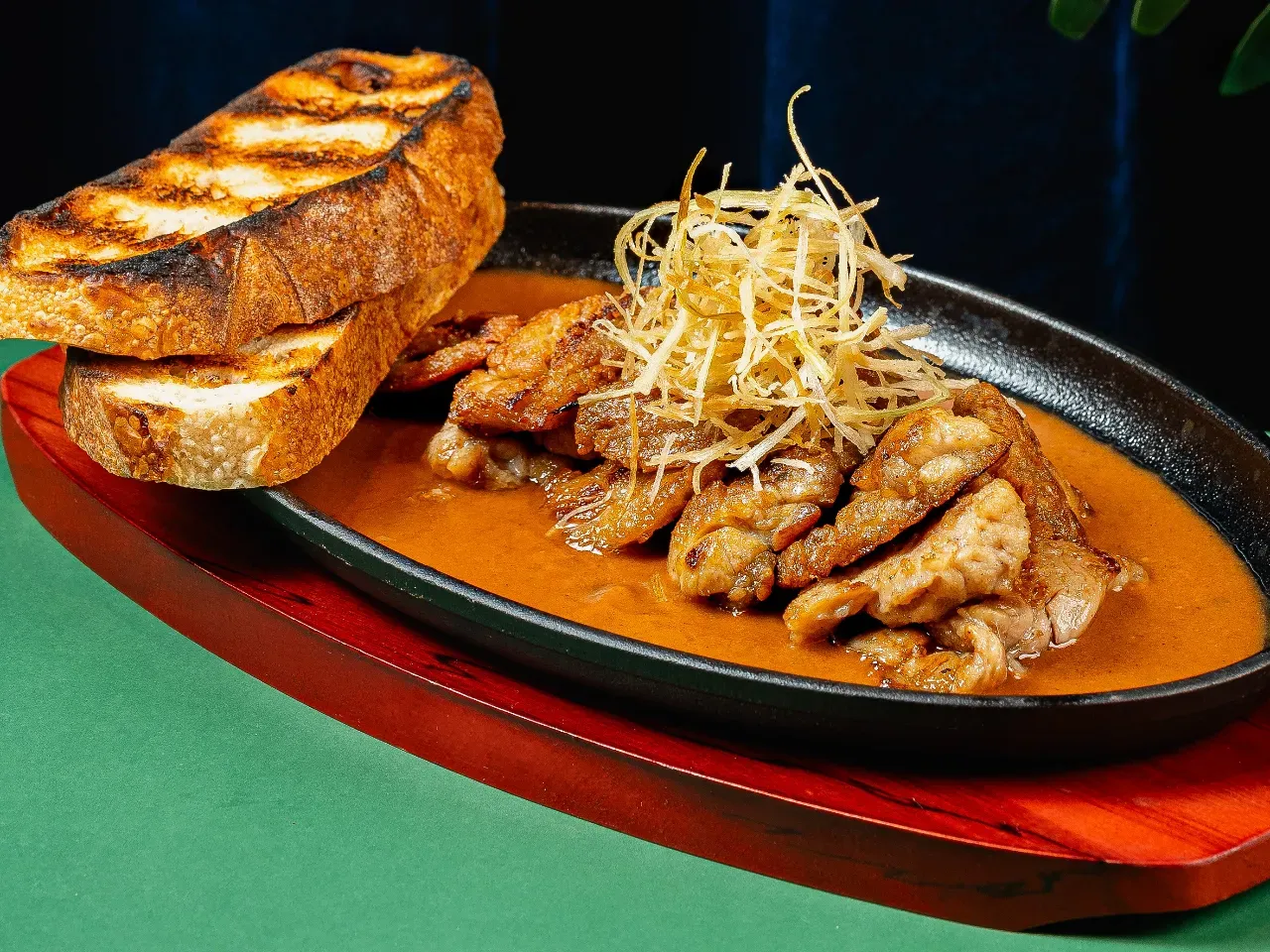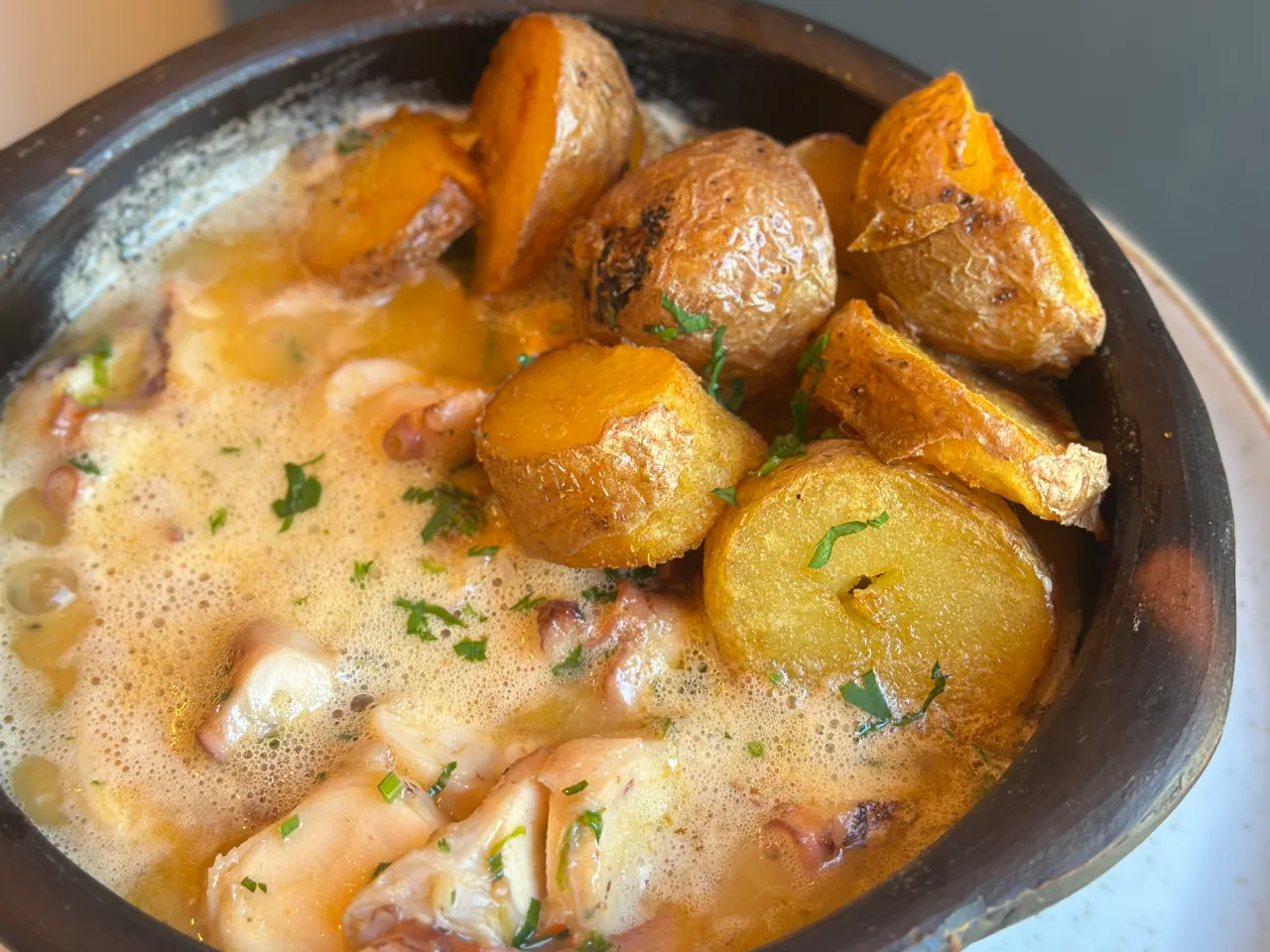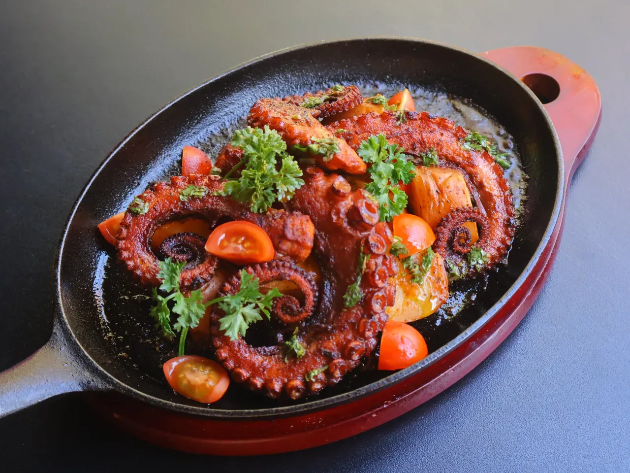 Una verdadera explosión de sabores en un solo plato: trozos de pollo, jugosa carne y frescos camarones, preparados al estilo pil pil con el toque perfecto de ajo, aceite de oliva y ají suave.