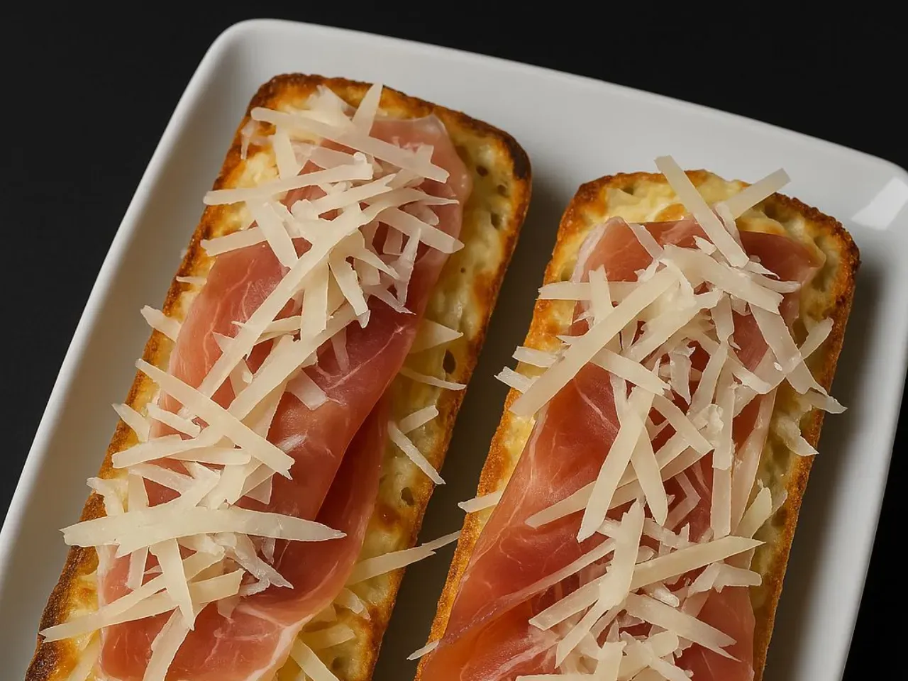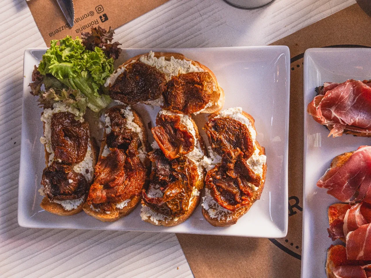 Ciabatta con tomates San Marzano y uvalina con parmesano reggiano.