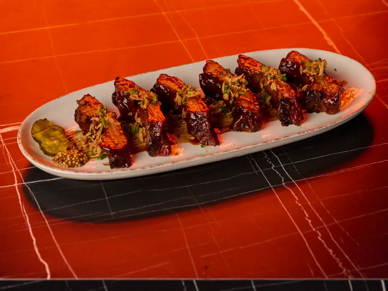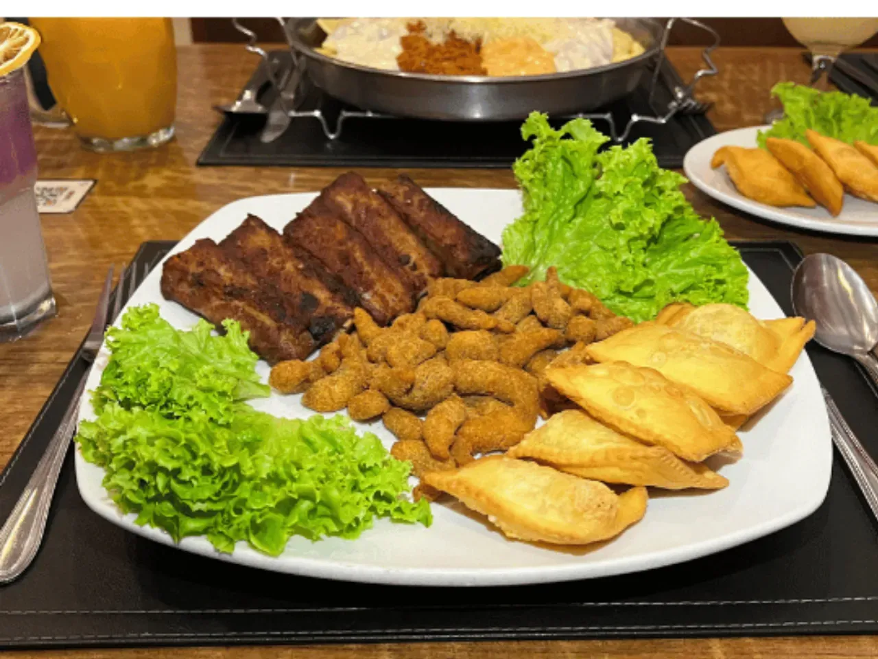 Exquisitas costillitas a la Parrilla, acompañados de nuestra icónicas empanaditas de queso con salsa pomodoro y la selección de los más frescos, crujientes y delicados camarones apanados servidos con salsa de soya.