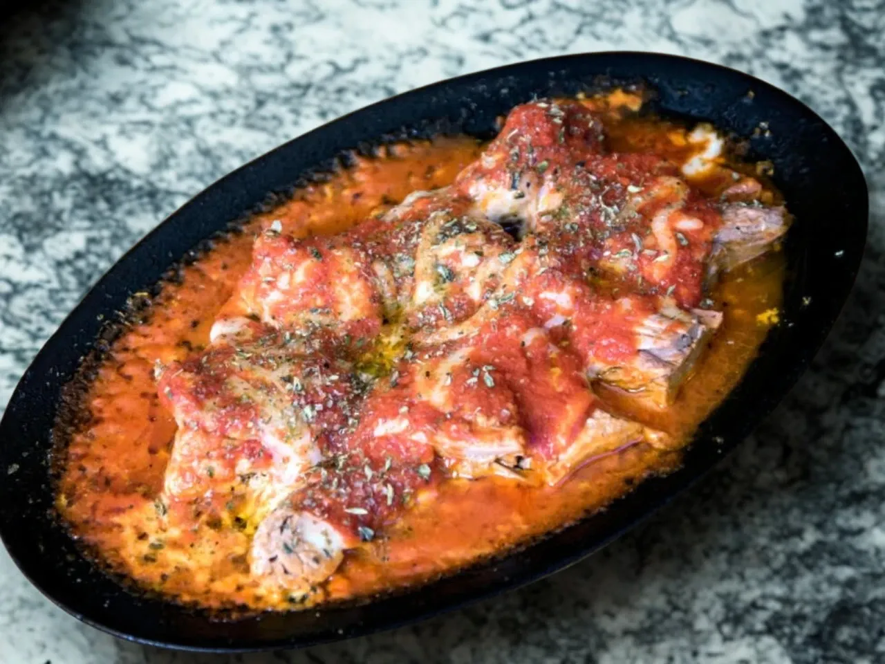 Matambre de cuatro horas a la olla, nuestra salsa de tomate, queso mozzarella y al horno. ¡Un clásico argentino!