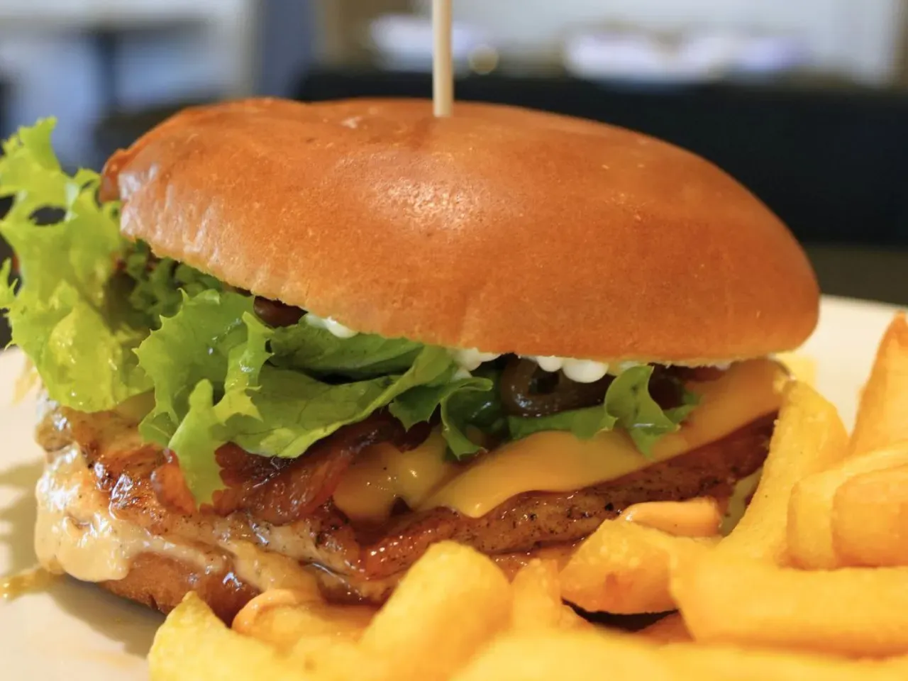 Jugoso pollo a la plancha (200g) coronado con queso cheddar derretido, pepinillos, lechuga fresca y nuestra exclusiva salsa Piccola (una creacion especial de la casa). Completada con las salsas tradicionales (Ketchup, Mayo y BBQ) para un sabor irresistible, acompañada de nuestras crujientes papas fritas (150g).