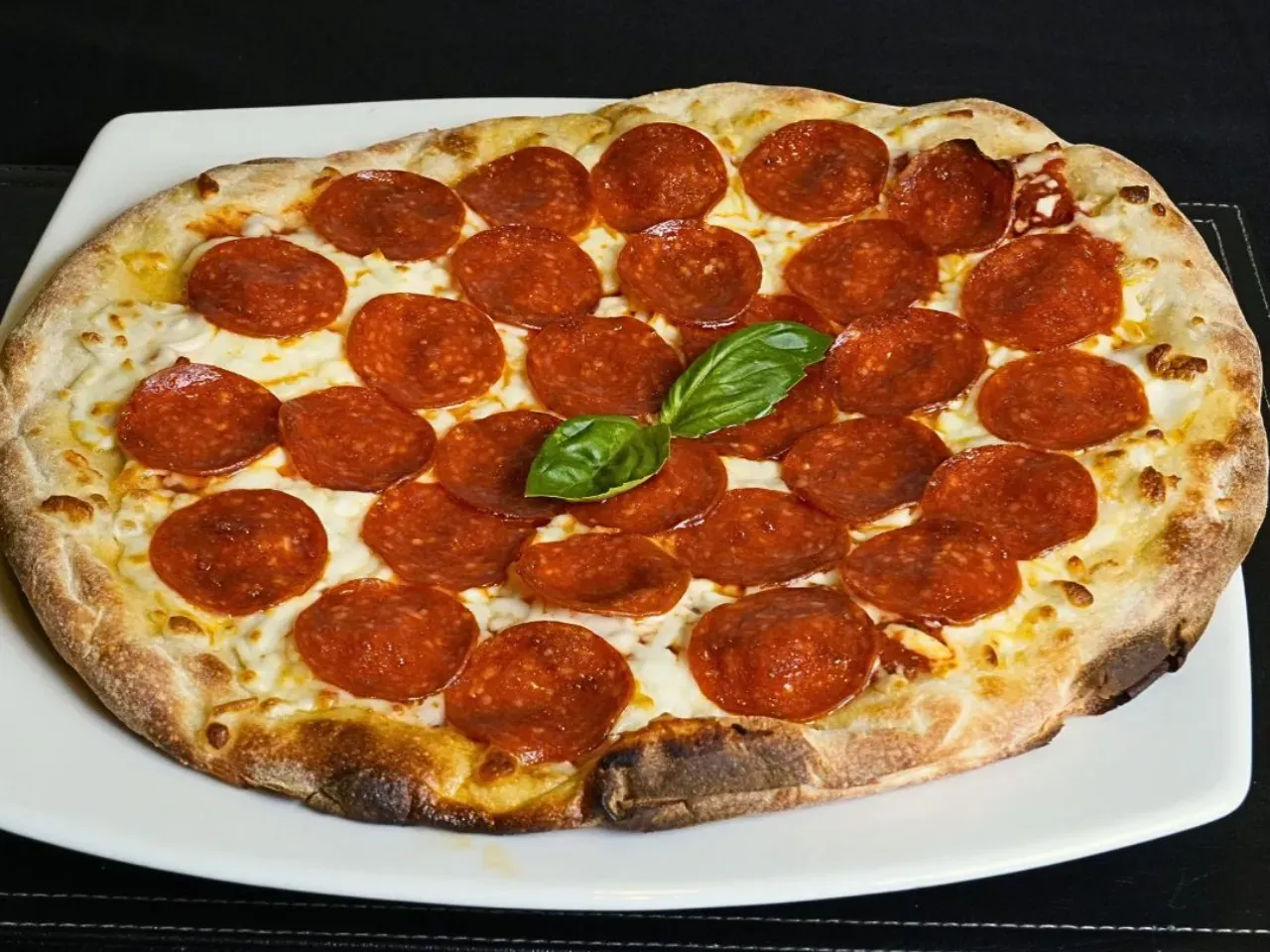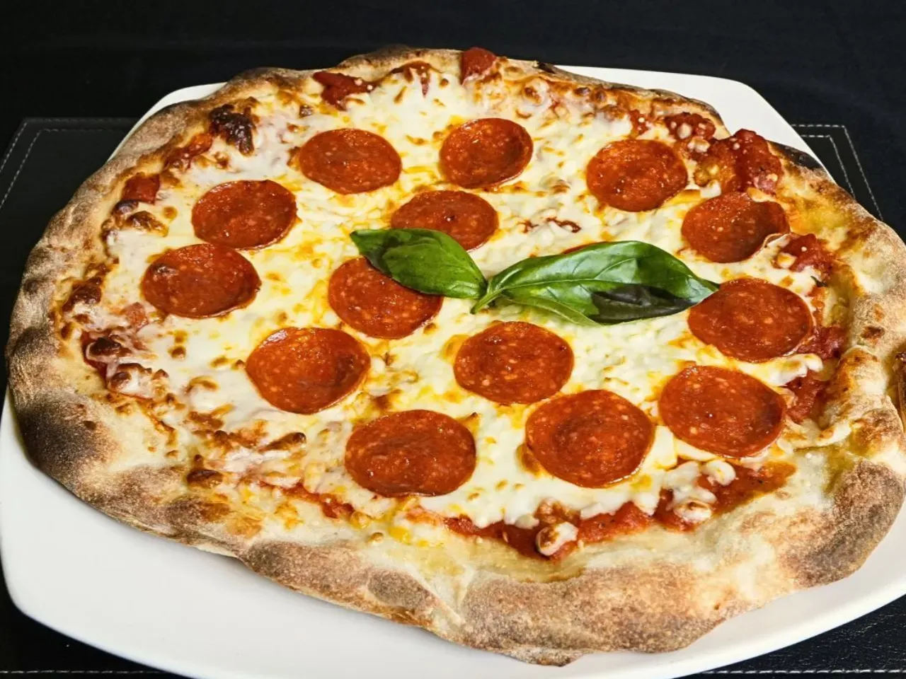Partiendo de nuestra base de masa artesanal con salsa pomodoro y queso mozzarella, esta pizza es generosamente cubierta con rodajas de pepperoni. Cada bocado esta lleno del sabor picante y ligeramente ahumado del pepperoni, convirtiendola en una opcion favorita para aquellos que buscan un toque de intensidad en su pizza.