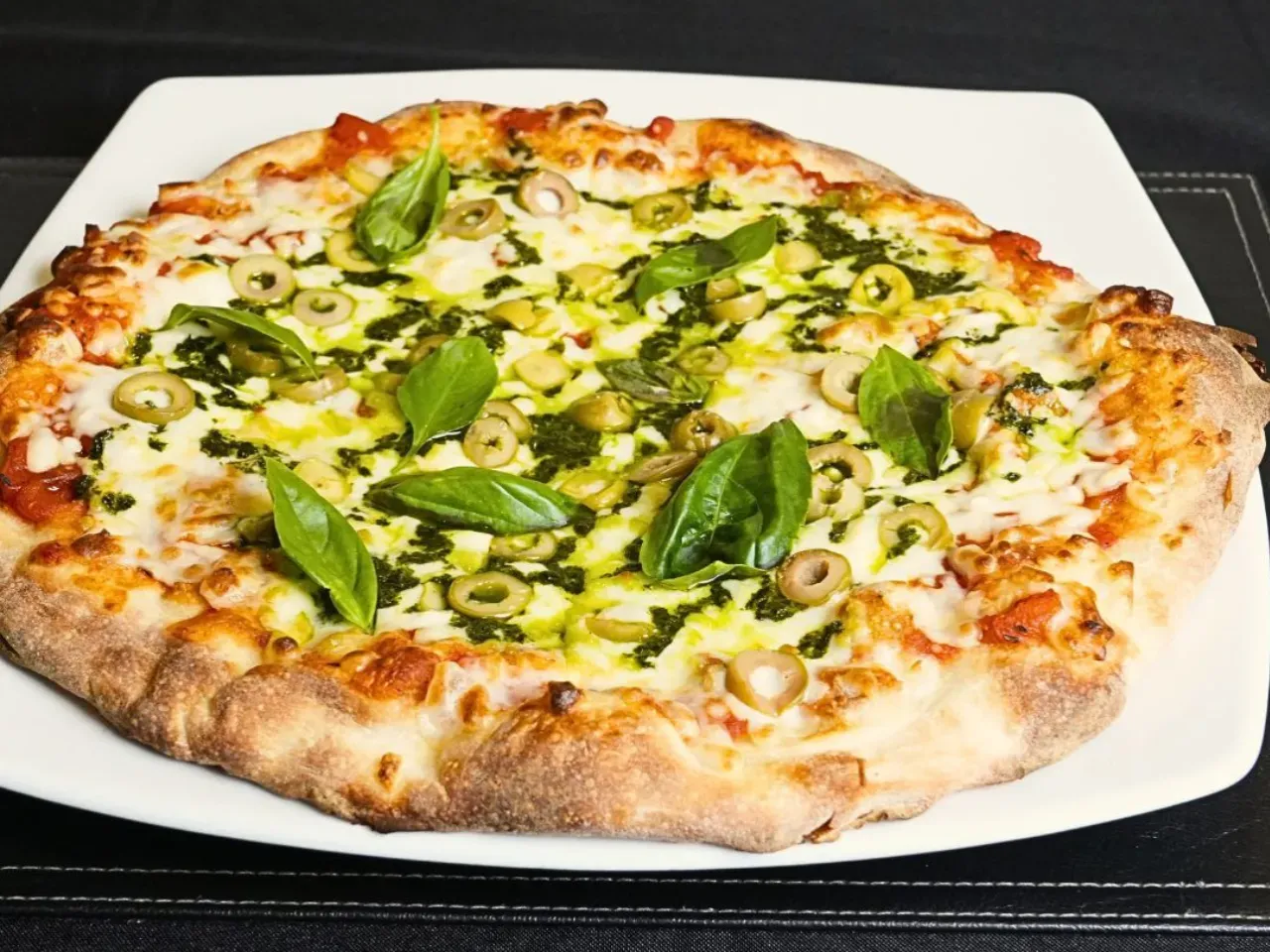 Un homenaje a los sabores del jardin, nuestra Pizza Piccola comienza con la clasica base de masa artesanal, salsa pomodoro y mozzarella. La enriquecemos con un toque de pesto aromatico, aceitunas verdes crujientes y fresca albahaca.