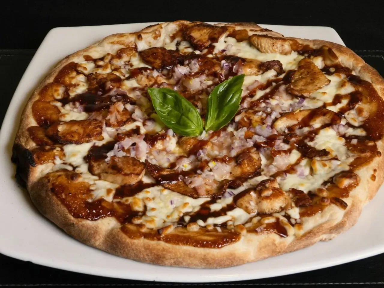 Nuestra Pizza de Pollo BBQ comienza con nuestra base de masa artesanal, pero en lugar de la tradicional salsa pomodoro, esta bañada en una rica salsa BBQ. Esta base especial se complementa con jugoso pollo, cebolla y tocino crujiente, ofreciendo una combinacion deliciosa y llena de sabor.
