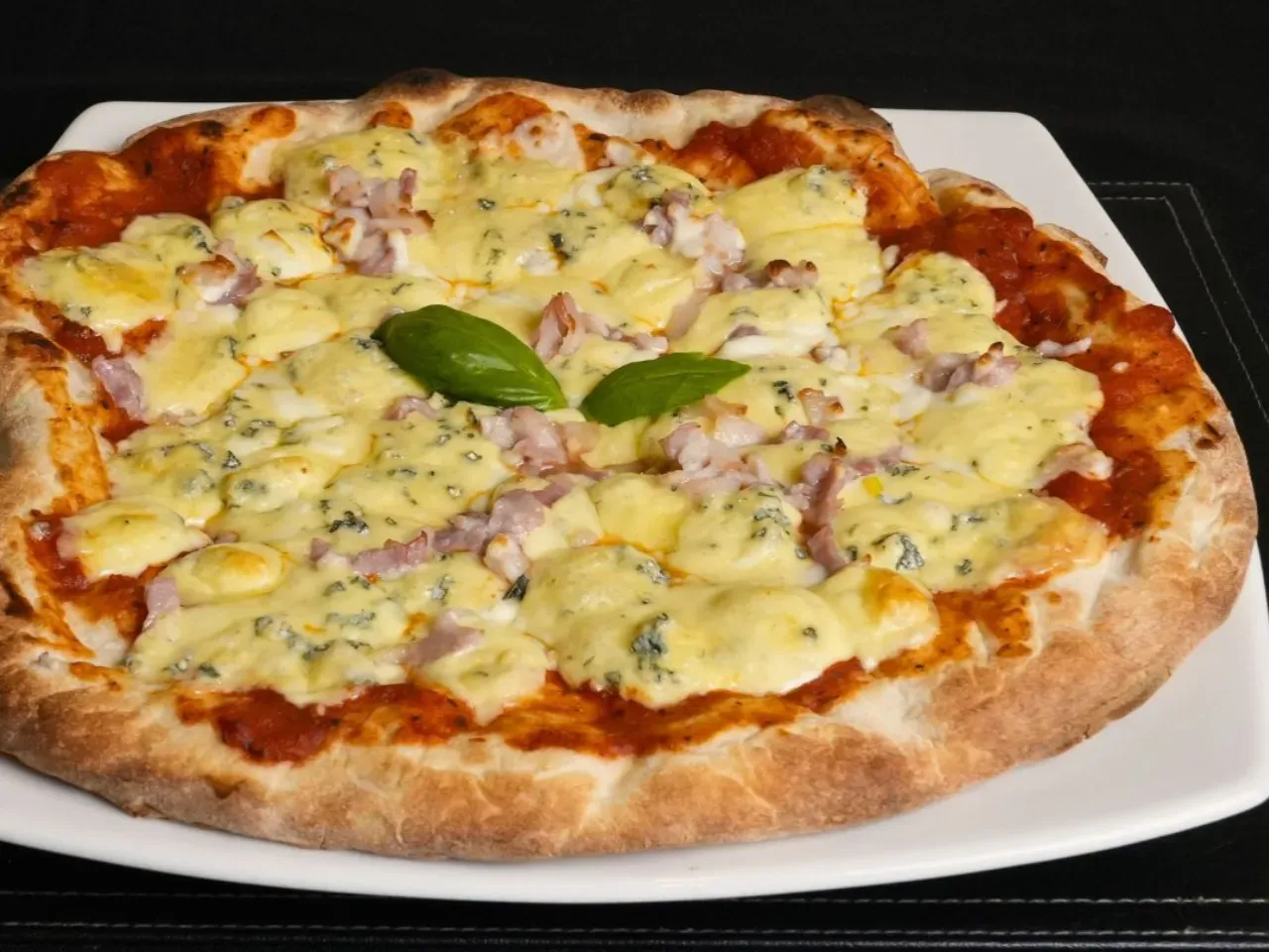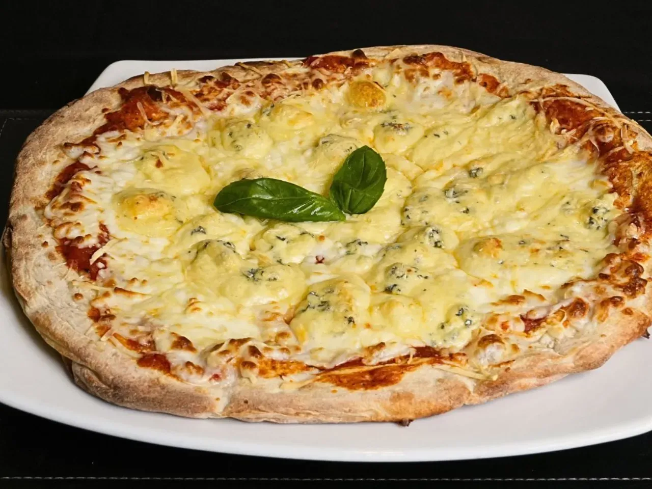 Disfruta de la armonia perfecta de quesos en nuestra Pizza, comenzando con nuestra base de masa artesanal, salsa pomodoro y mozzarella, añadimos dos tipos mas de quesos cuidadosamente seleccionados, esta pizza se enriquece con la incorporacion de queso azul intenso y parmesano finamente rallado. Perfecta para disfrutar de la simplicidad y el placer de los buenos quesos fundidos.