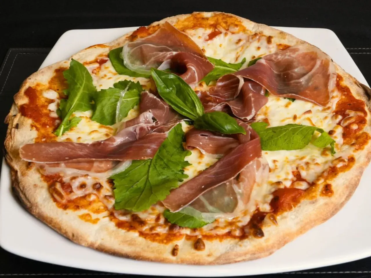 Partiendo de nuestra base tradicional de masa artesanal, salsa pomodoro y queso mozzarella, esta pizza se enriquece con fino jamon serrano y frescas hojas de rúcula. La combinacion del jamon curado con el toque ligeramente picante de la rúcula ofrece un sabor sofisticado y equilibrado, perfecto para quienes buscan algo mas que una pizza tradicional.
