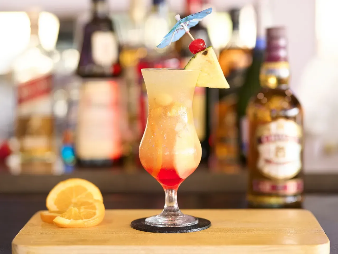 Refrescante Ramazotti, preparado con Gin , Crema Casis, Goma, limon y Agua Tonica