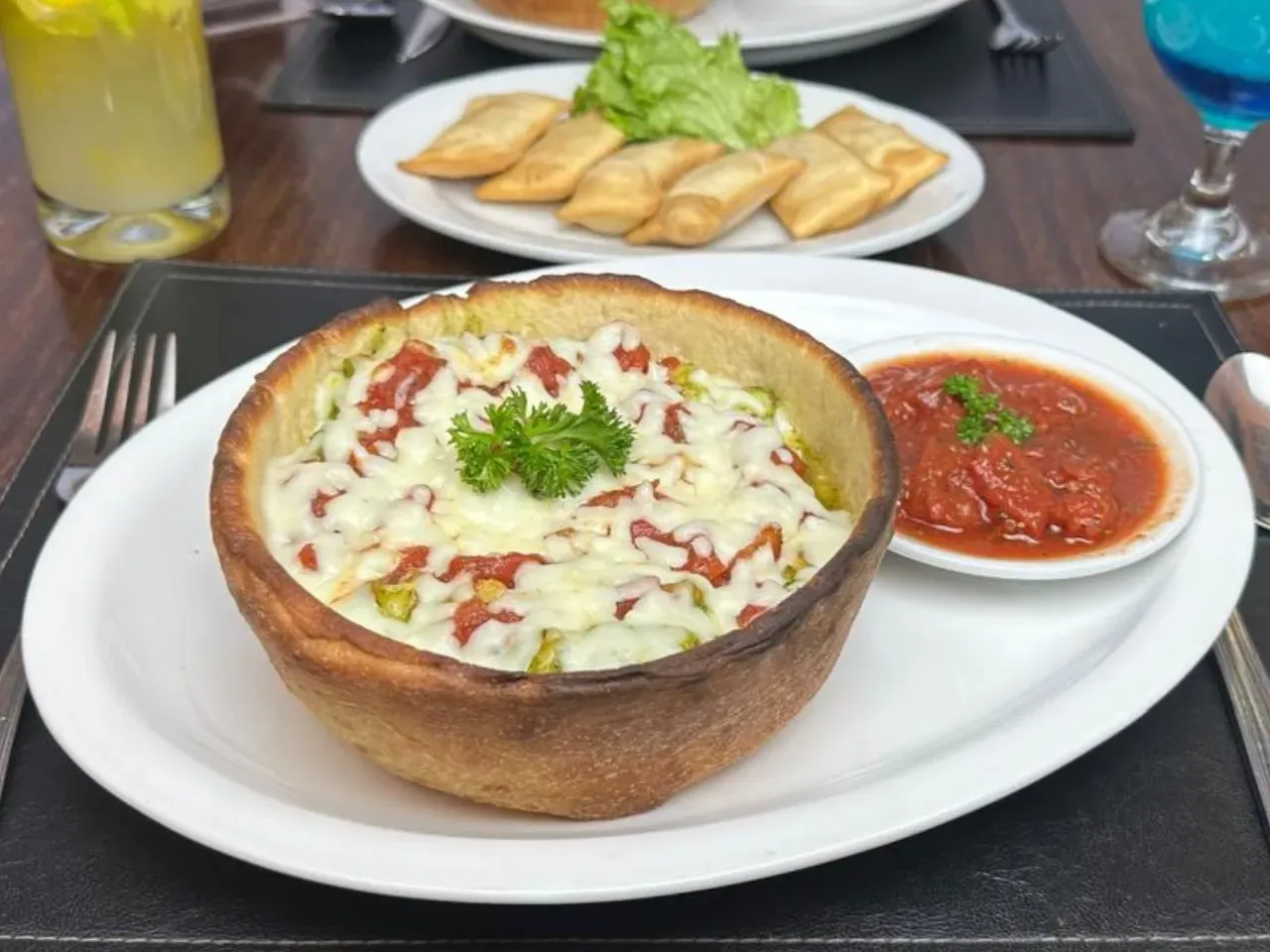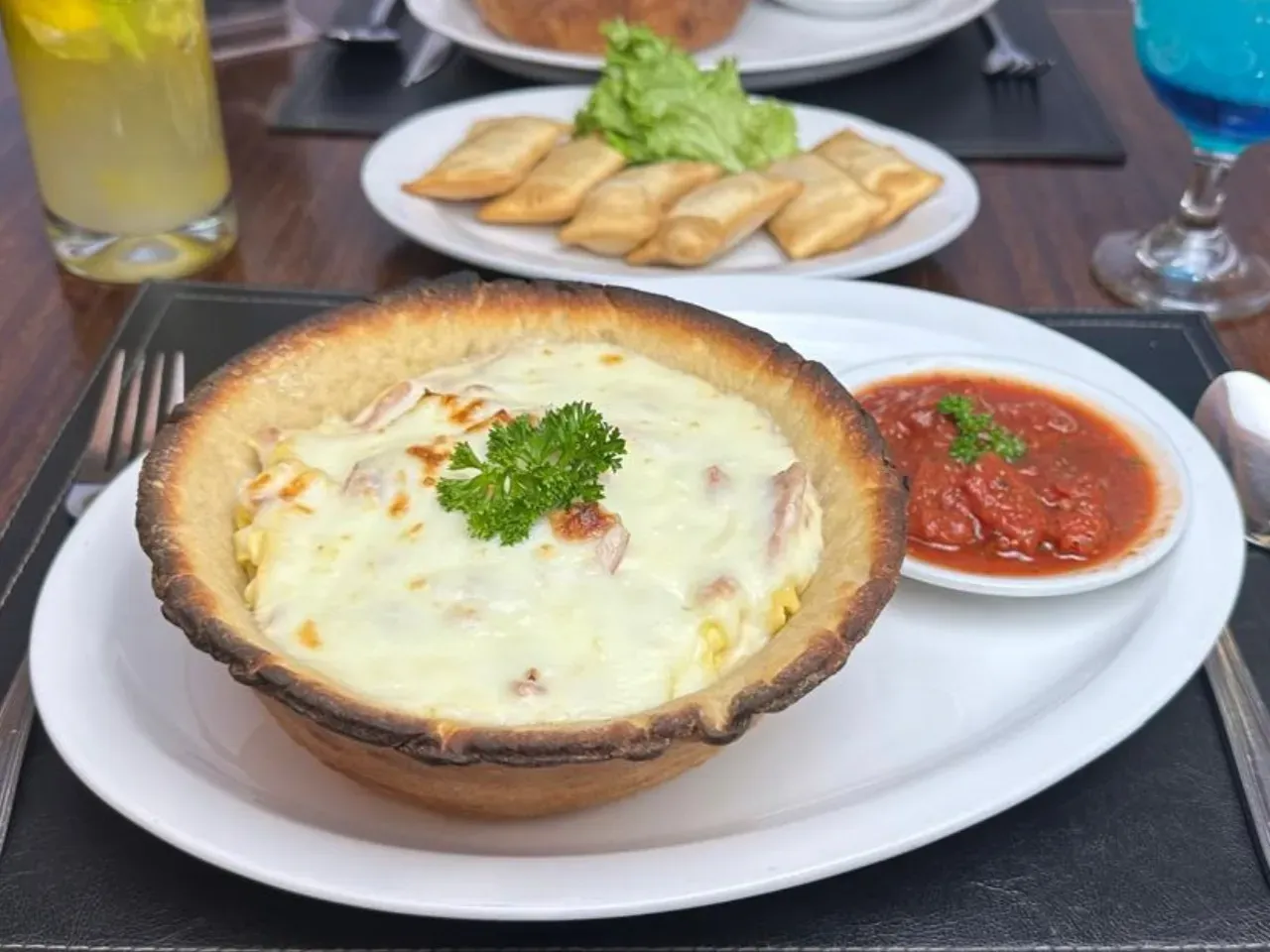 Delicada preparación de masa artesanal, rellena con Fetuccini y servida con una auténtica Salsa Alfredo.
