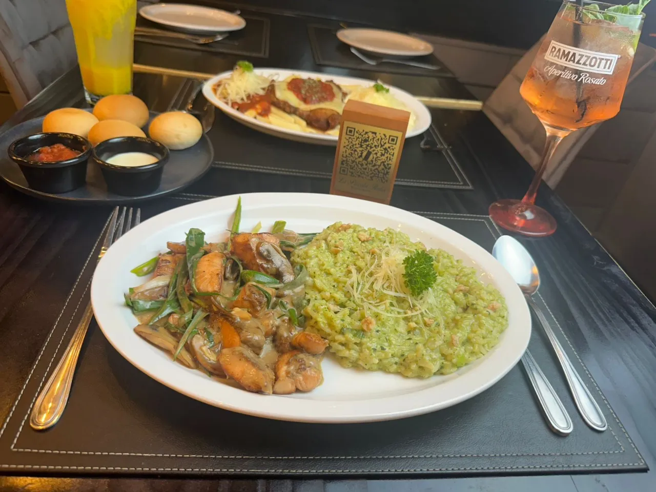Exquisitos gnochis hechos a mano, bañados en nuestra exclusiva salsa pesto, acompañados de una exquisito Salmón Piamontesa. Una experiencia gourmet.