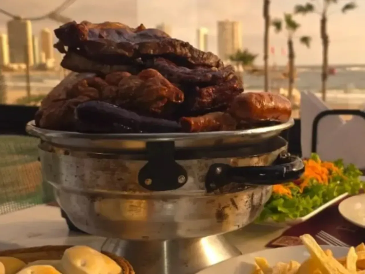 Parrillada compuesta por dos cortes de lomo 200 grs. , dos trozos plateada de cerdo asado, dos cuartos de pollo asado, dos trozos de longaniza ahumada, dos prietas, una porción de chunchules, una porción de riñones y papas asadas al horno con mantequilla . Ideal para dos a tres personas.