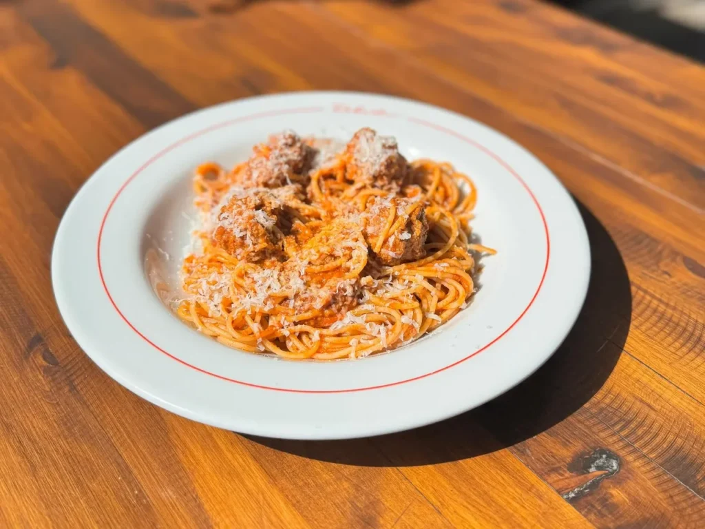 Deliciosos Spaghetti bañados en la tradicional receta italiana de Salsa Bolognesa de la casa