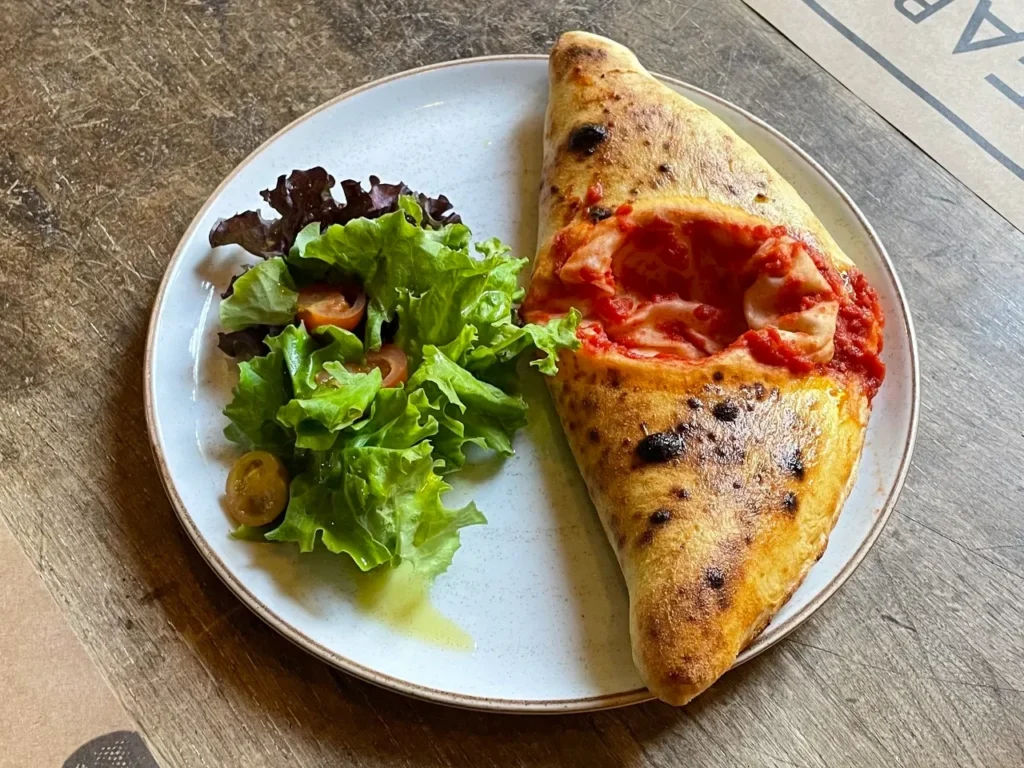 Pizza auténtica napolitana con tomate San Marzano, filetes de anchoas, orégano, aceitunas, tomates deshidratados agridulces, alcaparras y aceite de oliva extra virgen.