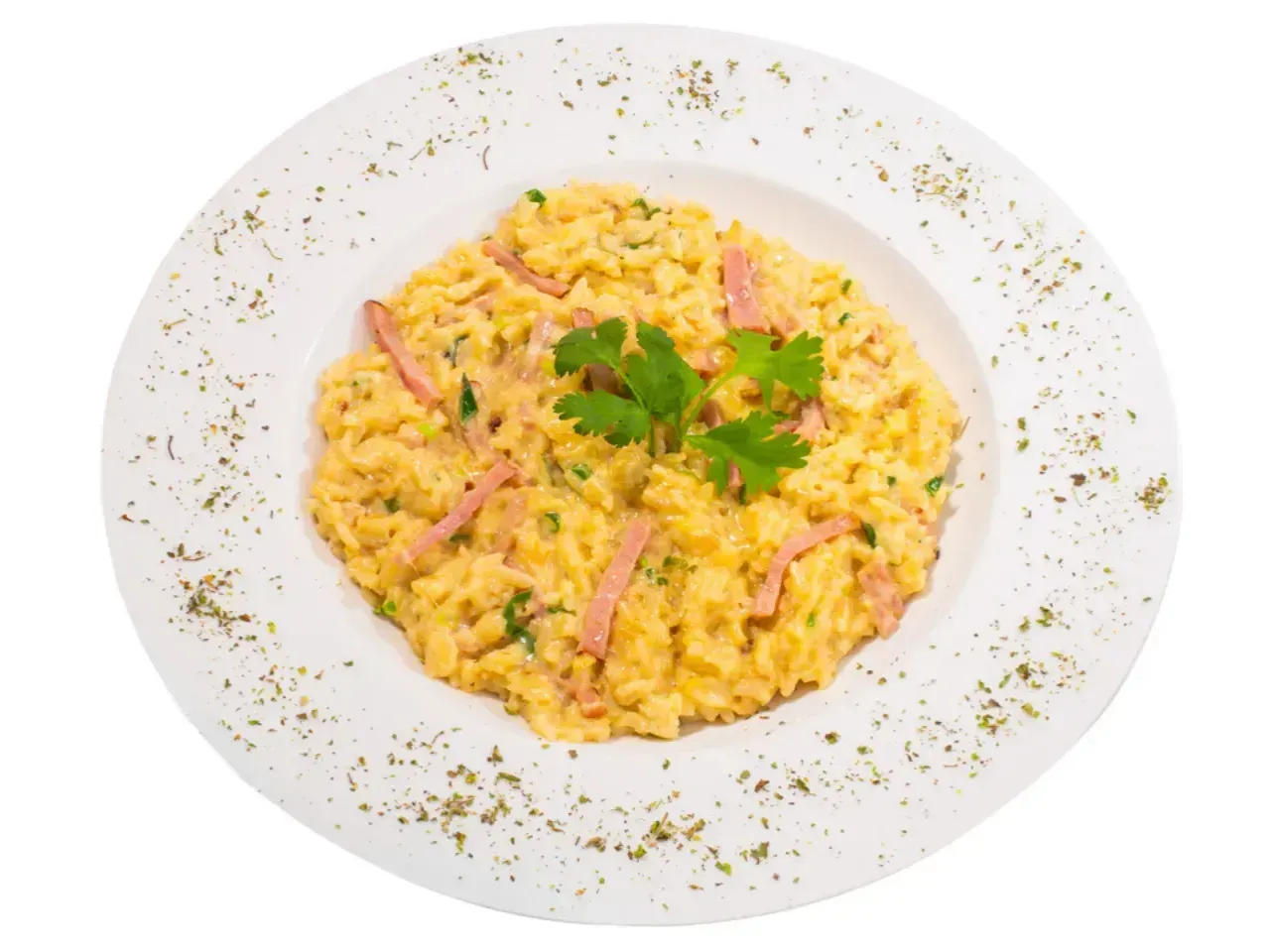 Filete de pollo sellado a la plancha y acompañado de un risotto cremoso al estilo tradicional italiano.