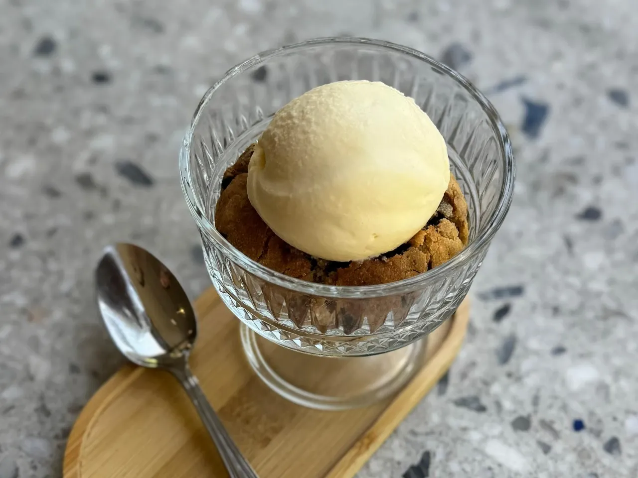 Helado de vainilla, acompañado de alguna de nuestras galletas, a elección.