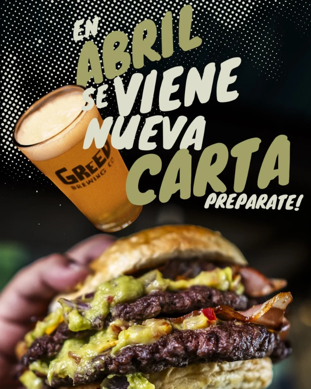 Hamburguesa con queso cheddar, lechuga, cebolla, pepinillos caseros y aderezo Greed. Se sirve con porción de papas fritas.