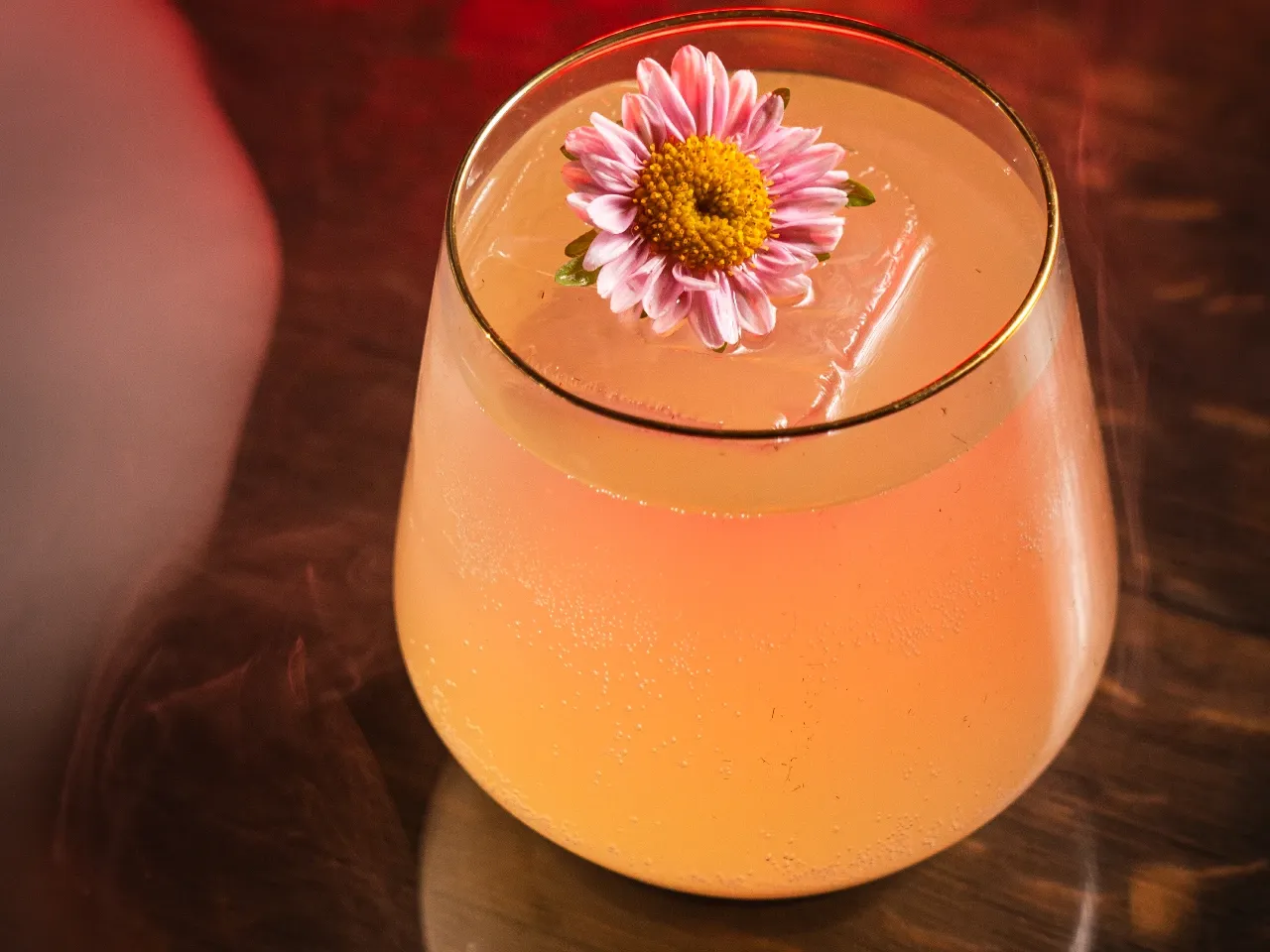 Un destello que combina lo ahumado y lo vibrante. Mezcal 400 conejos, gin Tanqueray, jugo de piña y el toque cítrico del limón. Se complementa con jengibre y suavizado por el syrup de goma, mientras el agua tónica burbujea para un final refrescante.