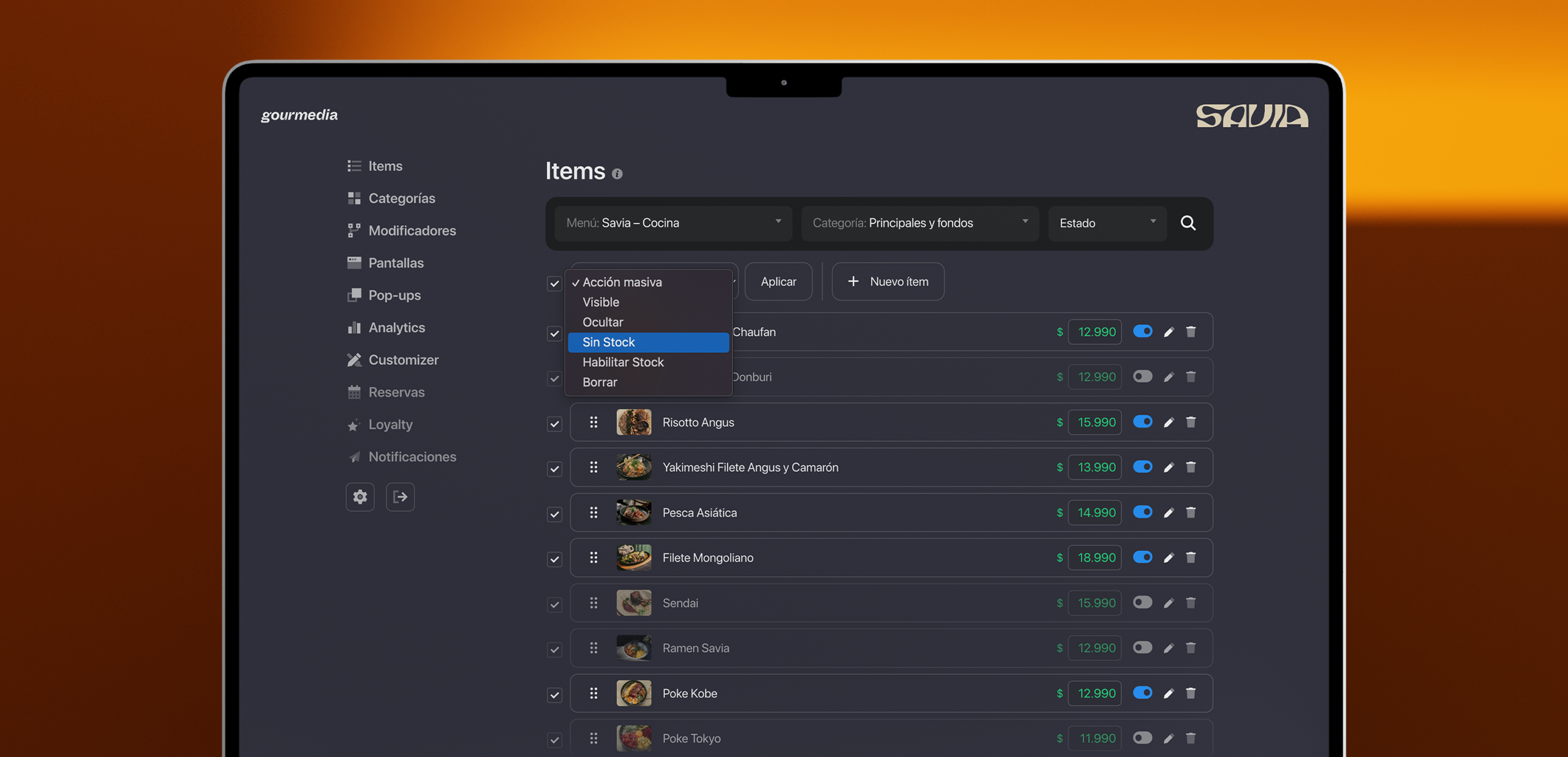 - Gestiona tu menú en tiempo real desde cualquier dispositivo.