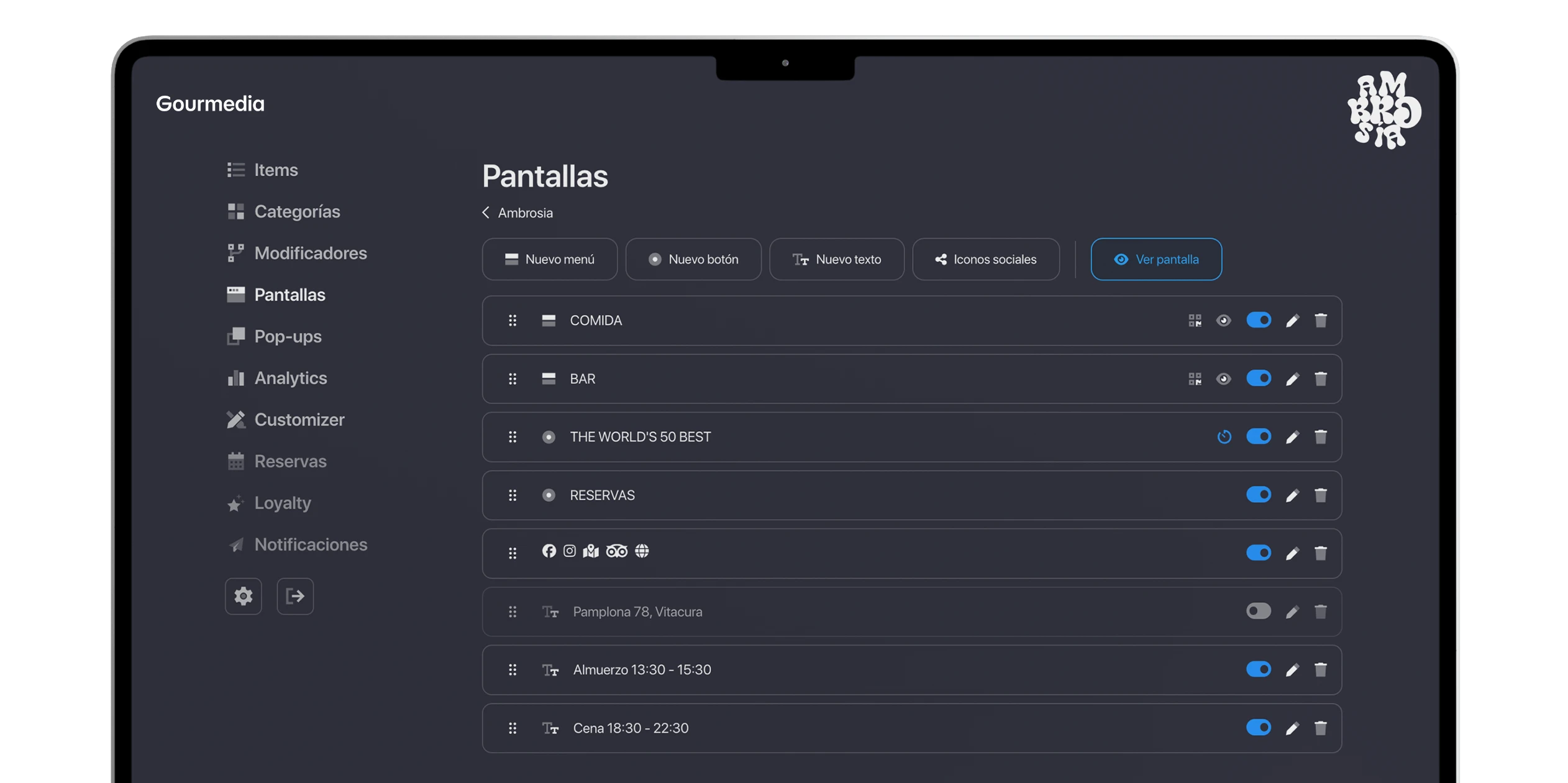 - Gestiona tu menú en tiempo real desde cualquier dispositivo.