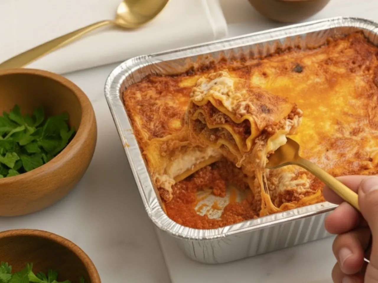 Tomate natural, carne de vacuno, cebolla, zanahoria, queso gauda y queso parmesano.