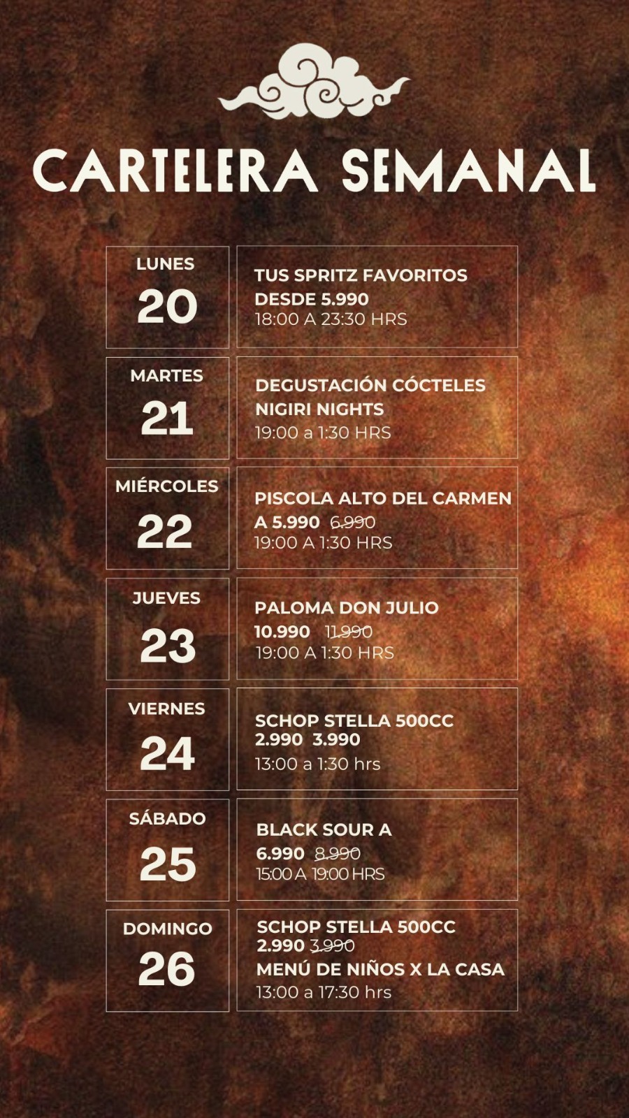 Domingo de 13:00 a 17:30