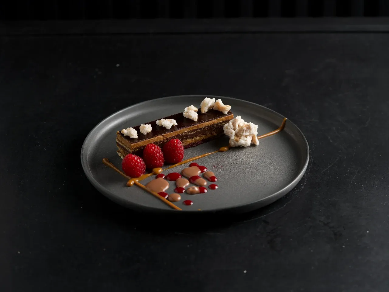 Slice de salmón sobre leche de tigre de ají amarillo, chalaquita, palta flambeada, terminado con toques de spicy y salsa teriyaki.
